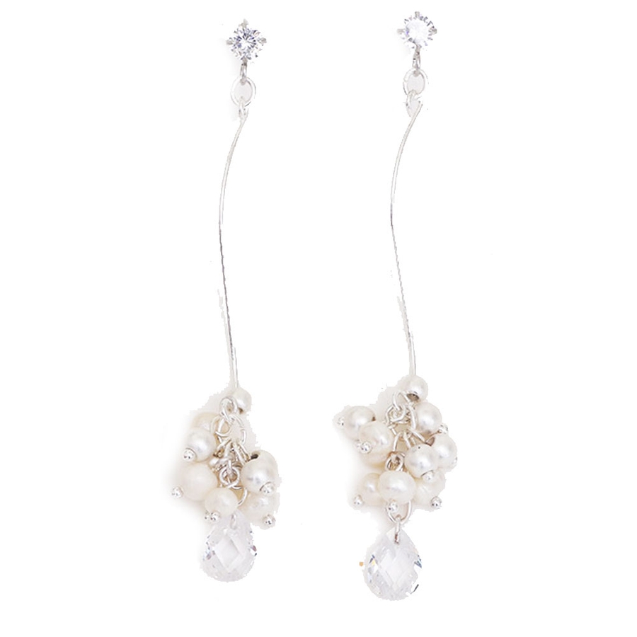 波型のスティックにパールとスワロフスキーの付いたスタッドピアス。