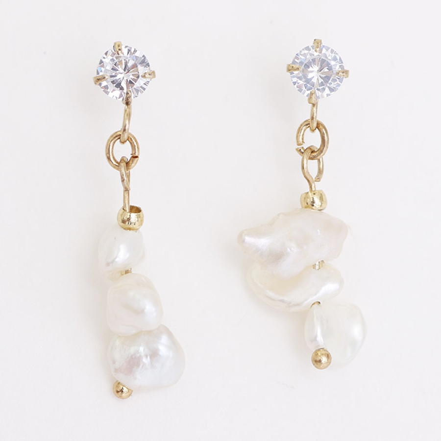 柔らかい雰囲気が印象的な淡水パールは、あえて自然な形のまま使用。