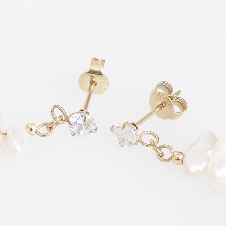 肌なじみの良いゴールドカラーをベースにしているので淡水パールがよく映えてお顔周りを明るくしてくれます。