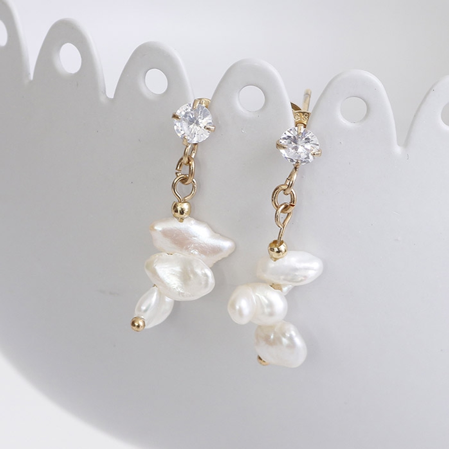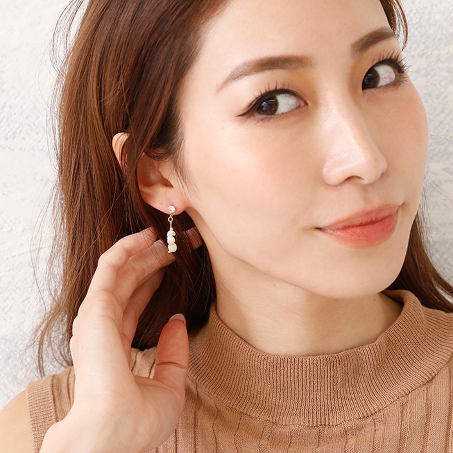 小粒の淡水パールを3つ繋げることでほどよい存在感を放ちます。