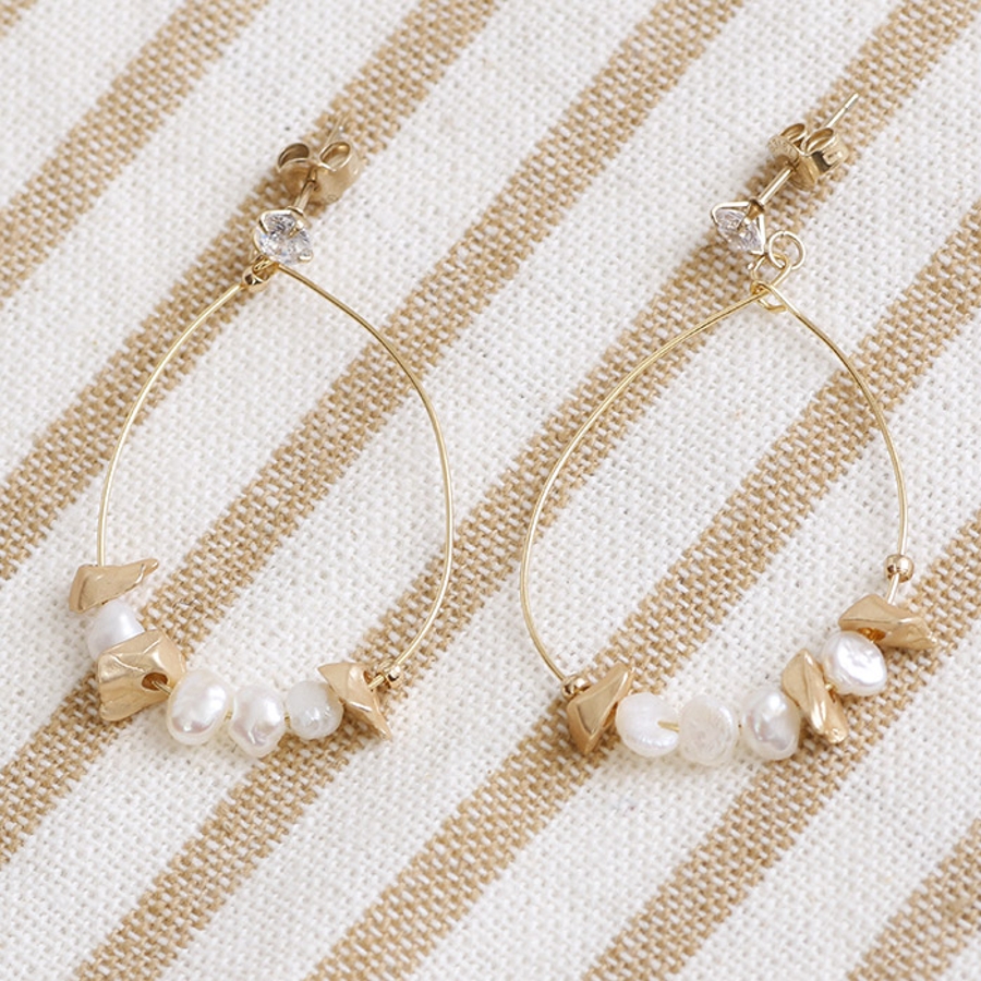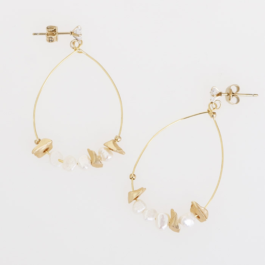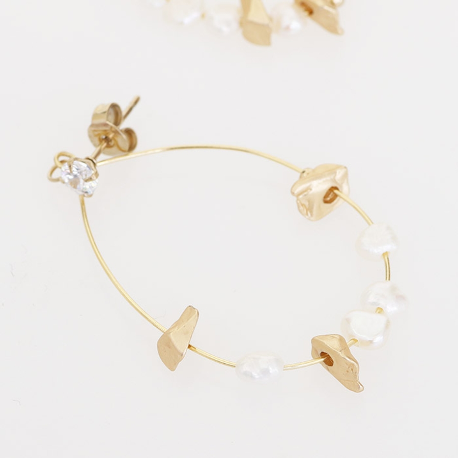 ティアドロップ型のフープに淡水パールを合わせたスタッドピアス。