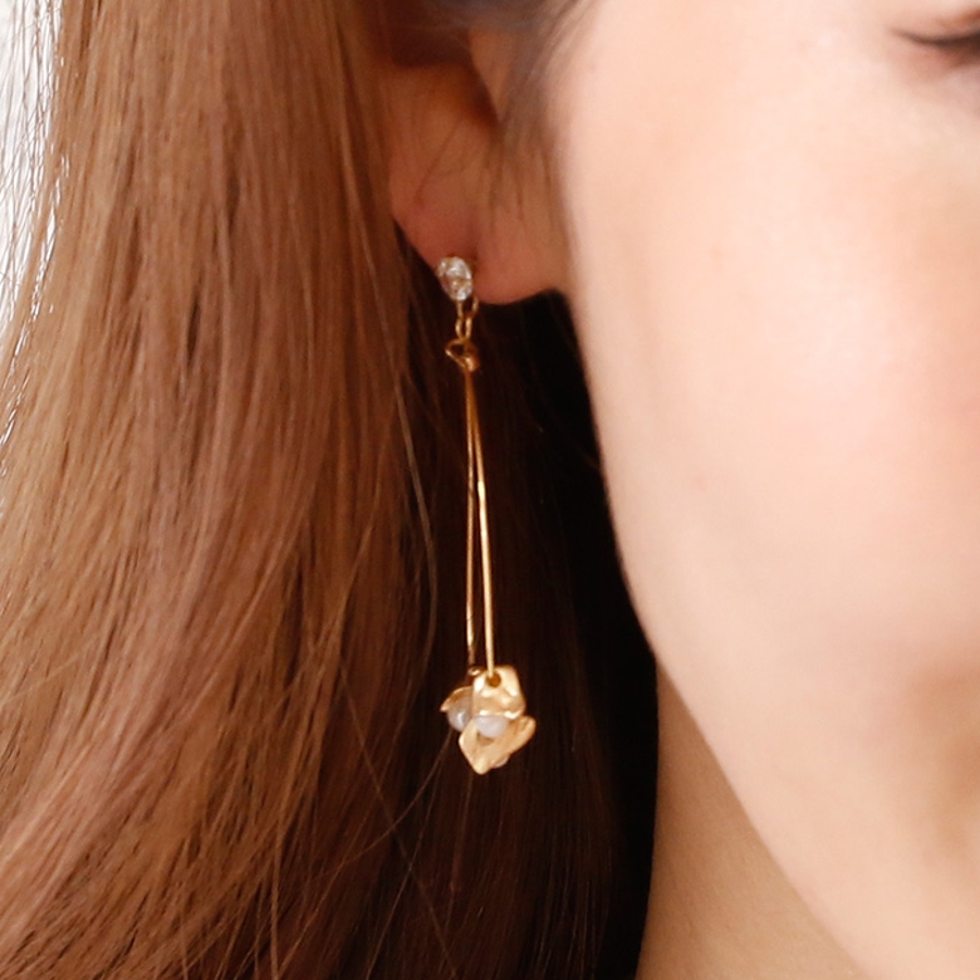 肌なじみの良いゴールドカラーに淡水パールがよく映えてお顔周りを明るくしてくれます。