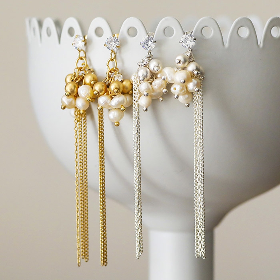 やわらかでやさしい光沢が上品な淡水パールと華奢なチェーンは相性抜群。
