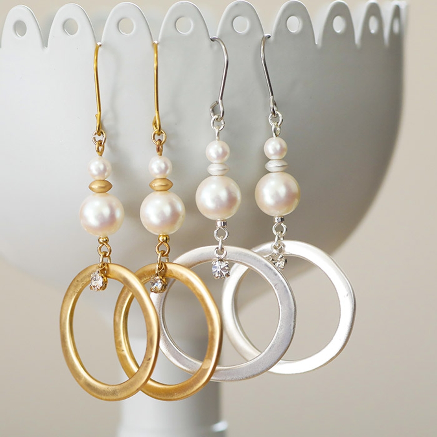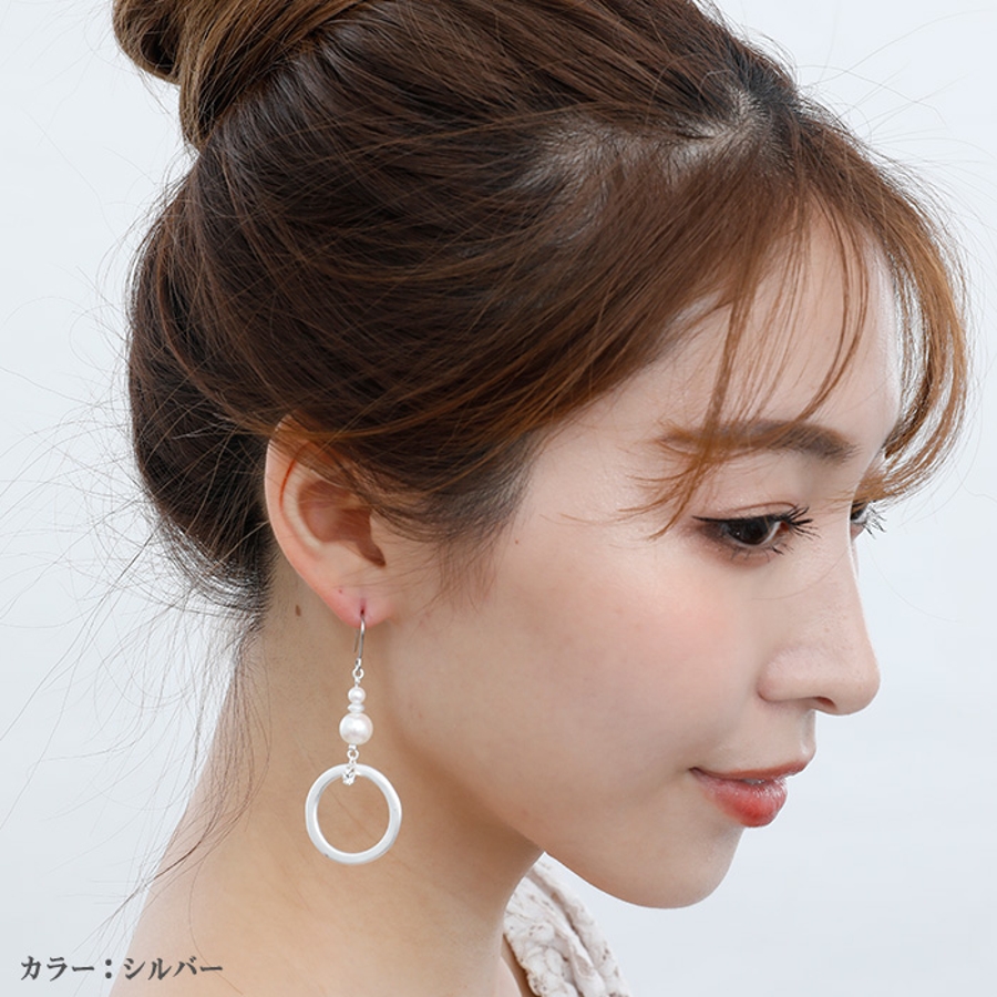 ミドルサイズのラウンドはお顔を華やかにしてくれ、パールが女性らしさをアップ♪