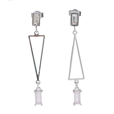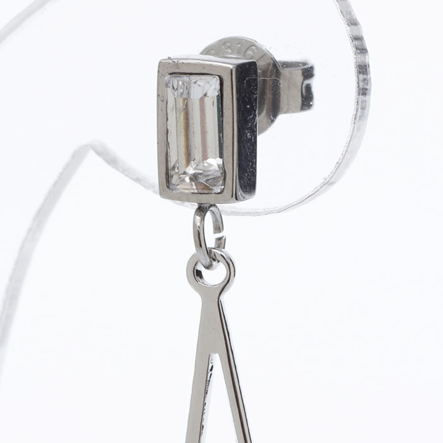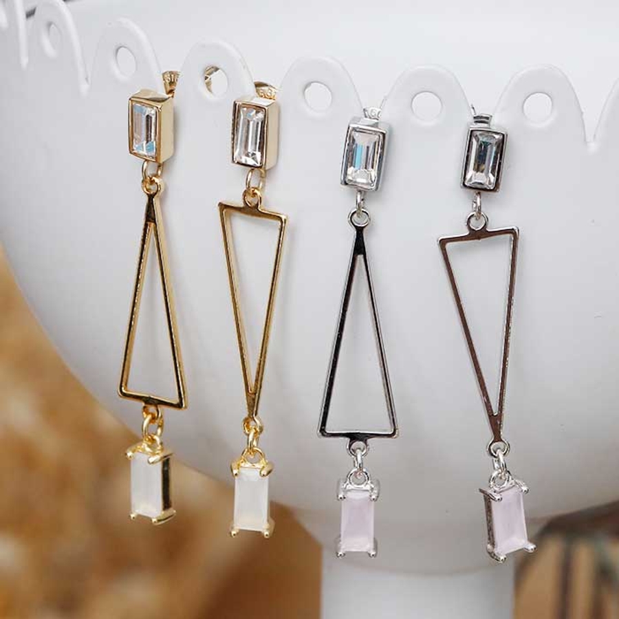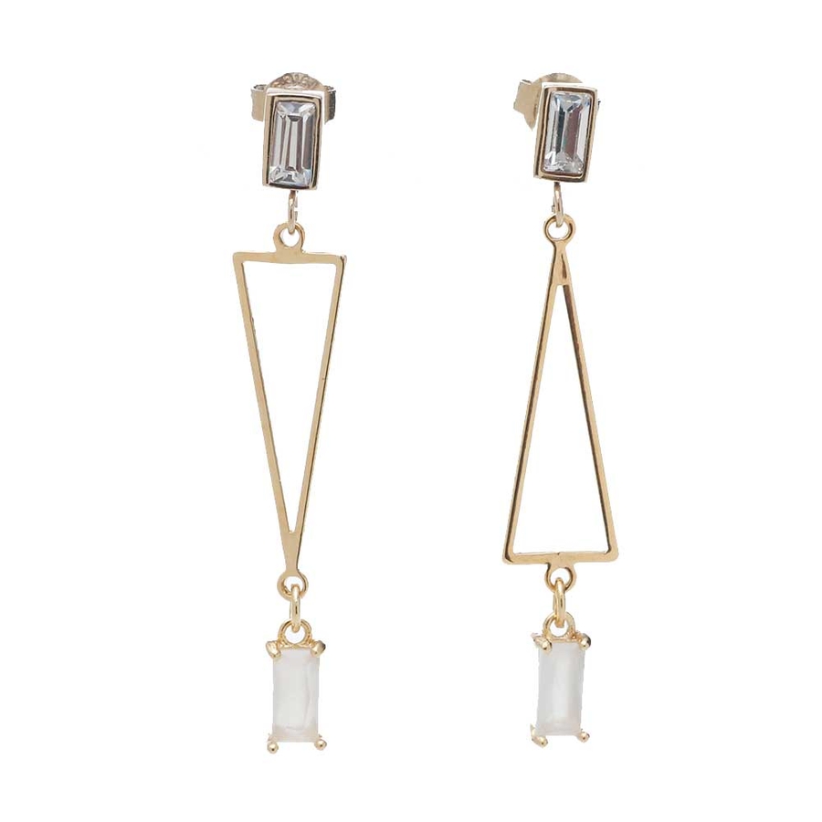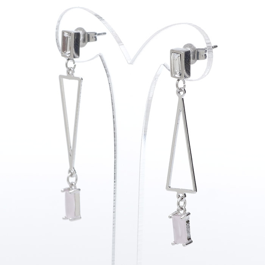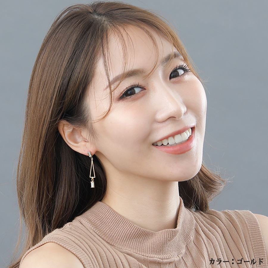左右で三角形の向きが違うお洒落なデザインが特徴のロングピアス。