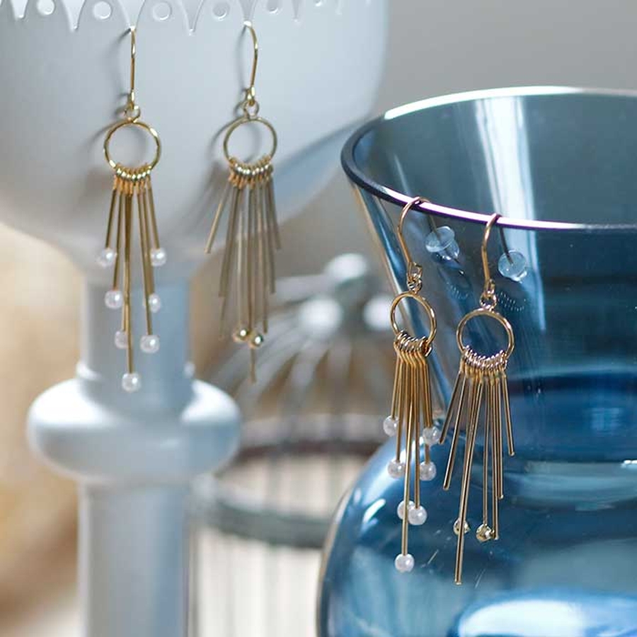 いくつものスティックが重なったお洒落なロングピアス。