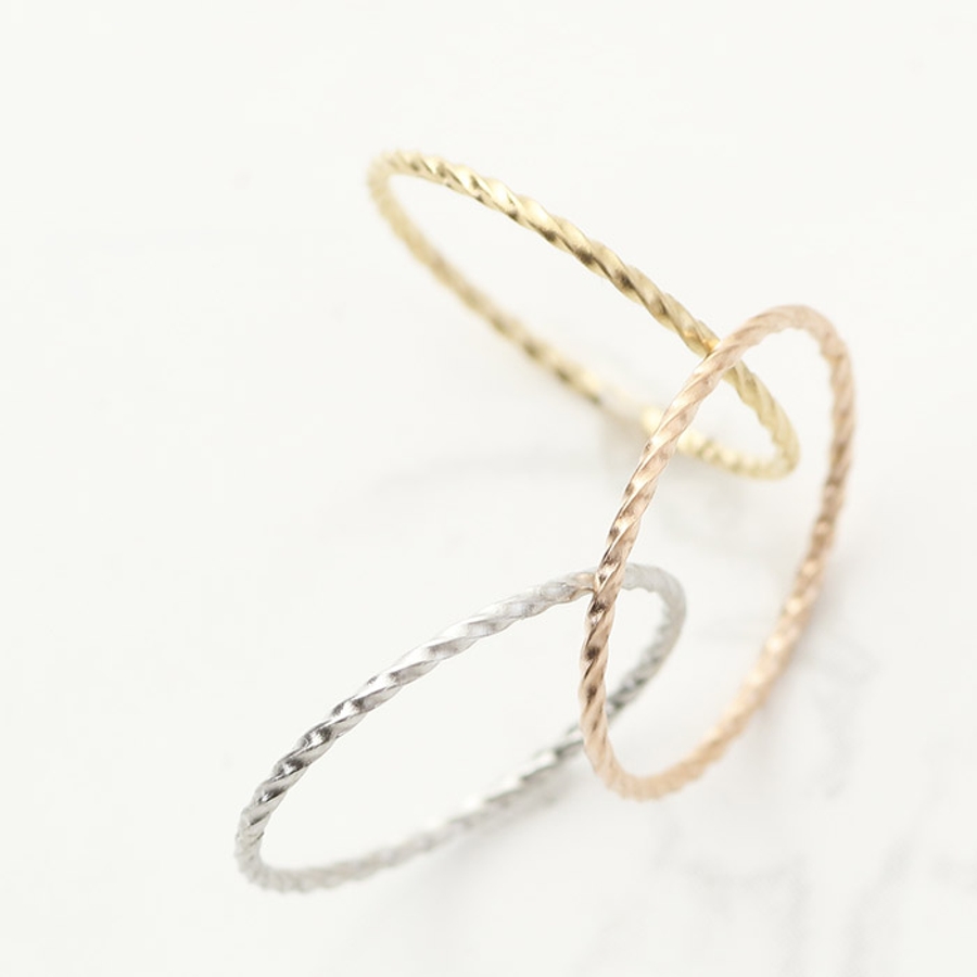 シンプルなツイストラインでシャープな指元を演出するリング。