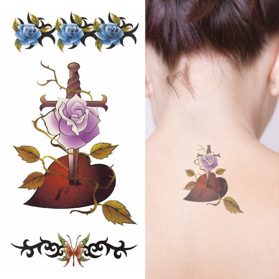 タトゥーシールスタックインハート&ローズ 薔薇バラ
