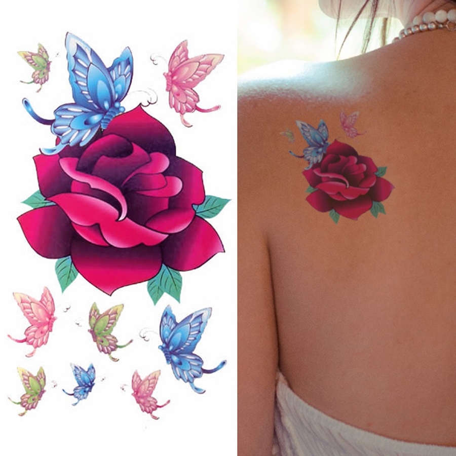 タトゥーシールピンクローズ&バタフライ 蝶々バラ薔薇ばら