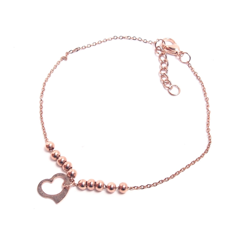 316Lサージカルステンレス ピンクゴールド ハート&ボールチャーム アンクレット