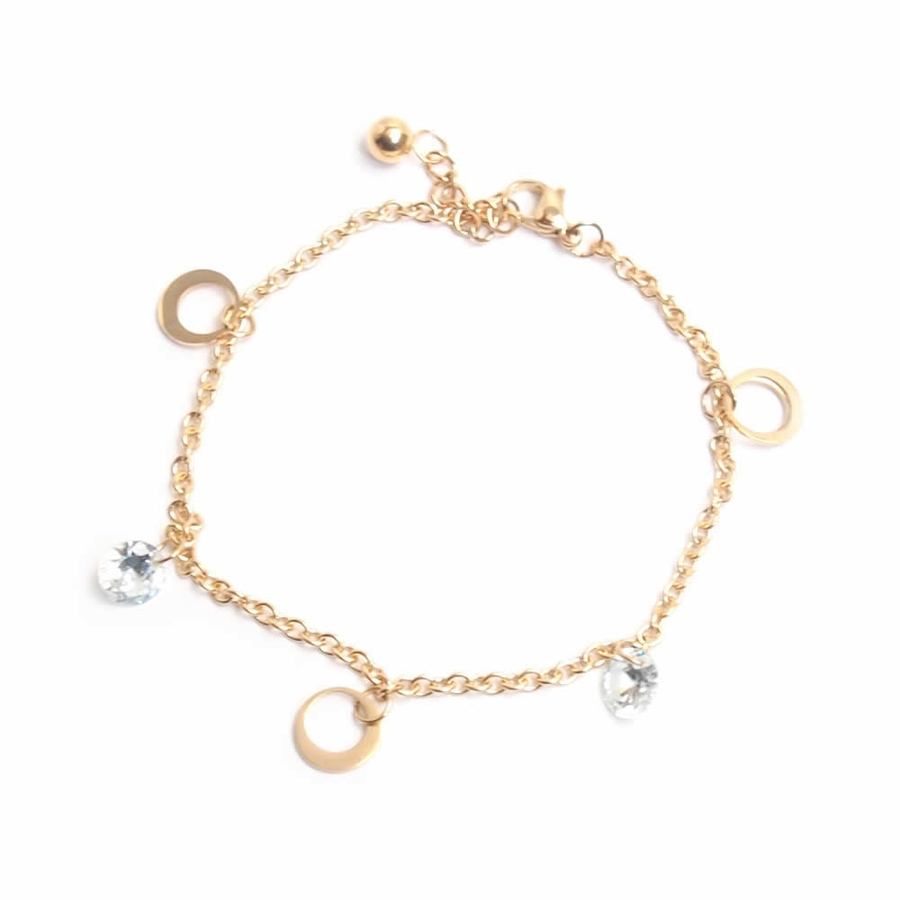 316Lサージカルステンレス ゴールド サークル&ジュエルチャーム アンクレット