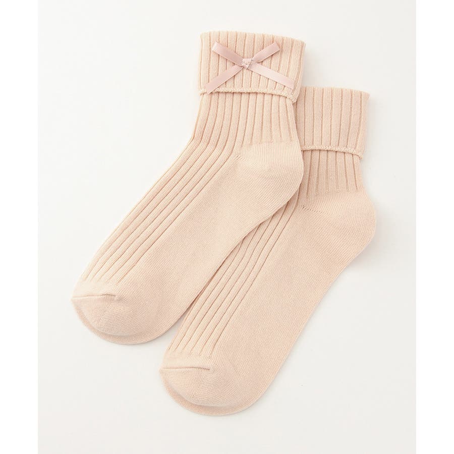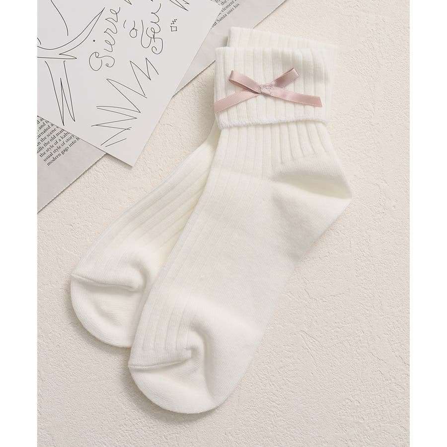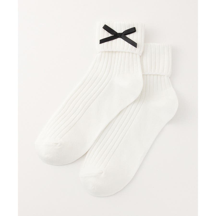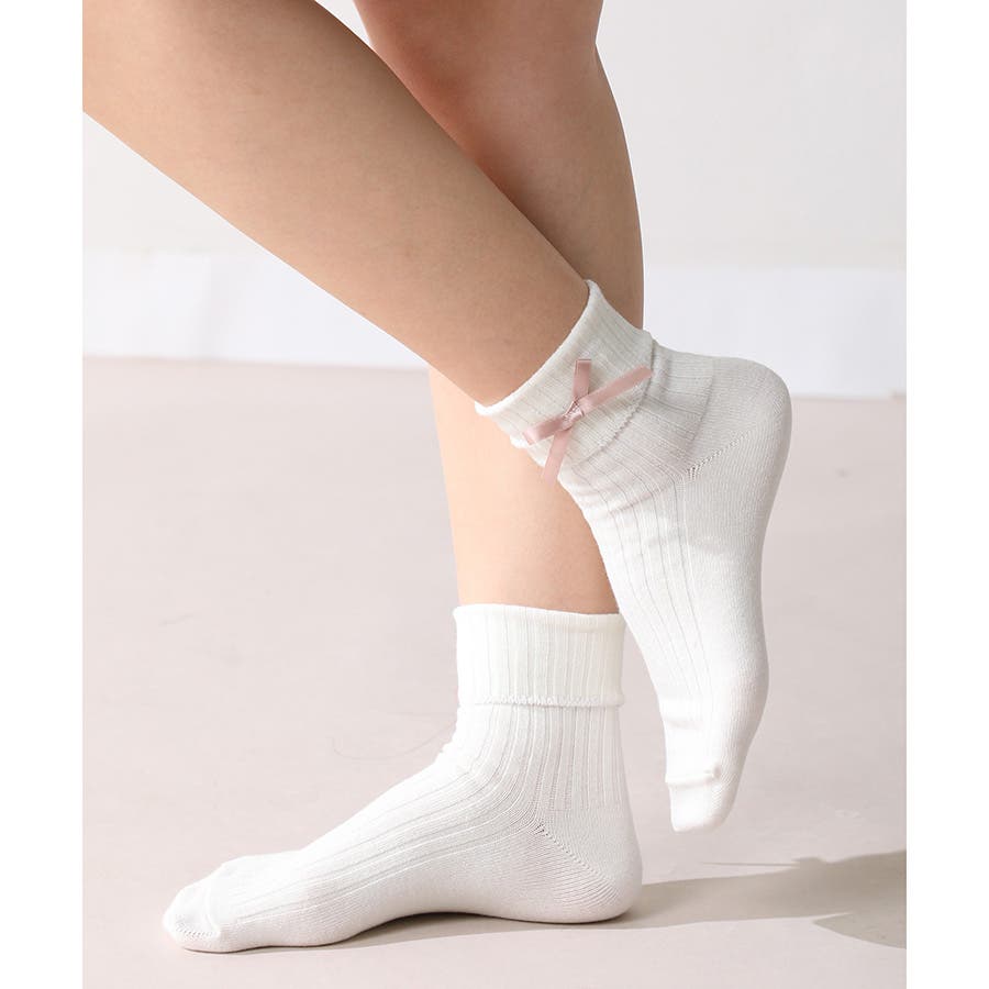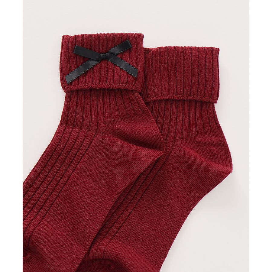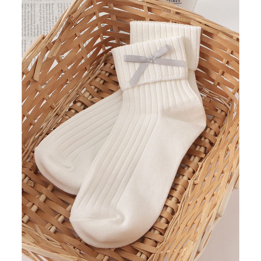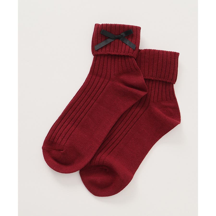 リボンモチーフがキュートなクルーソックス。