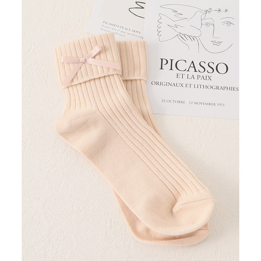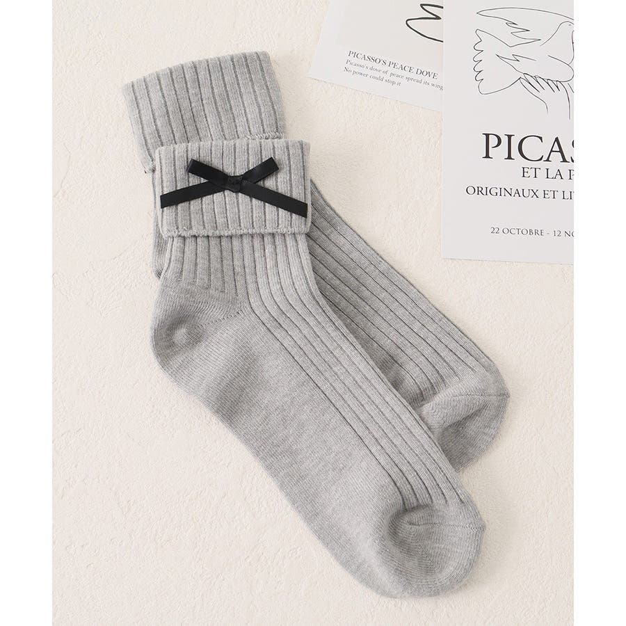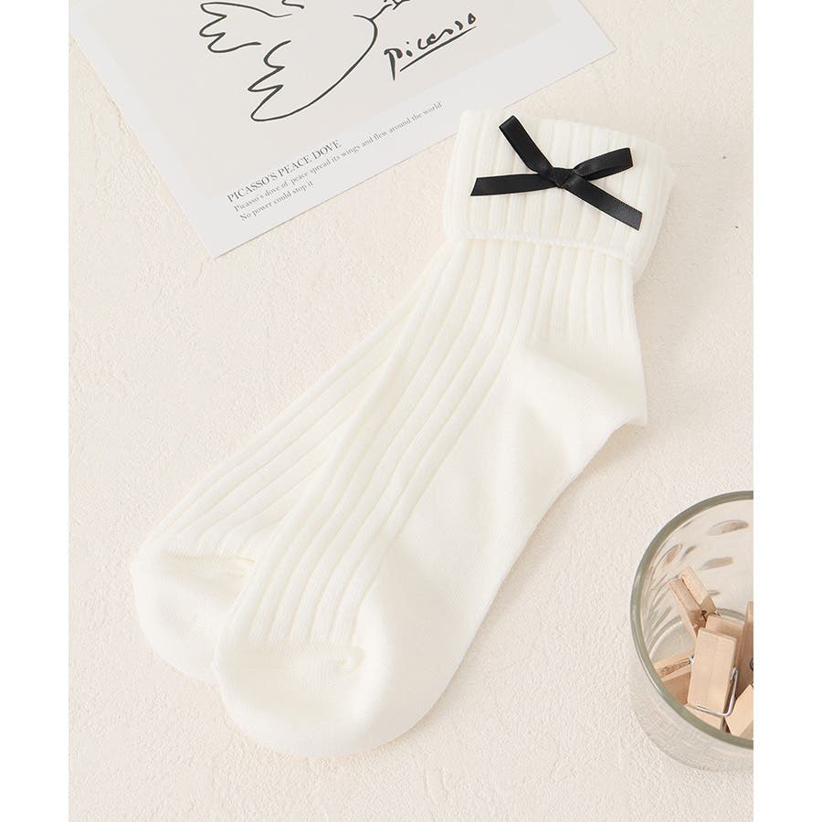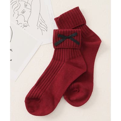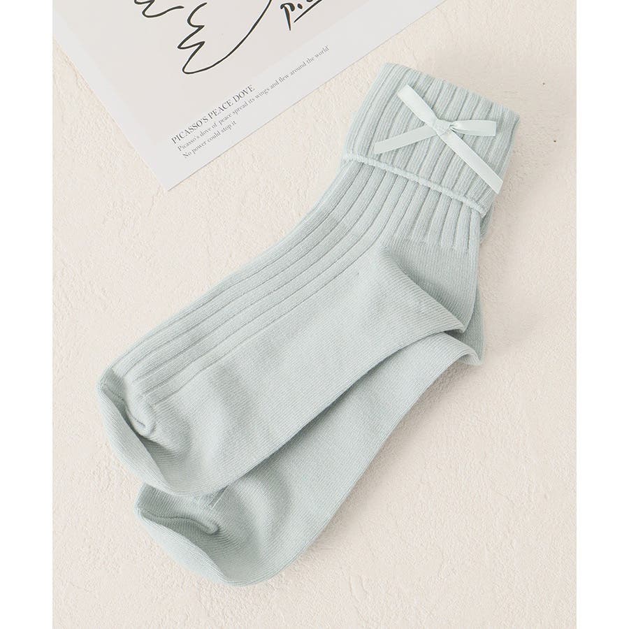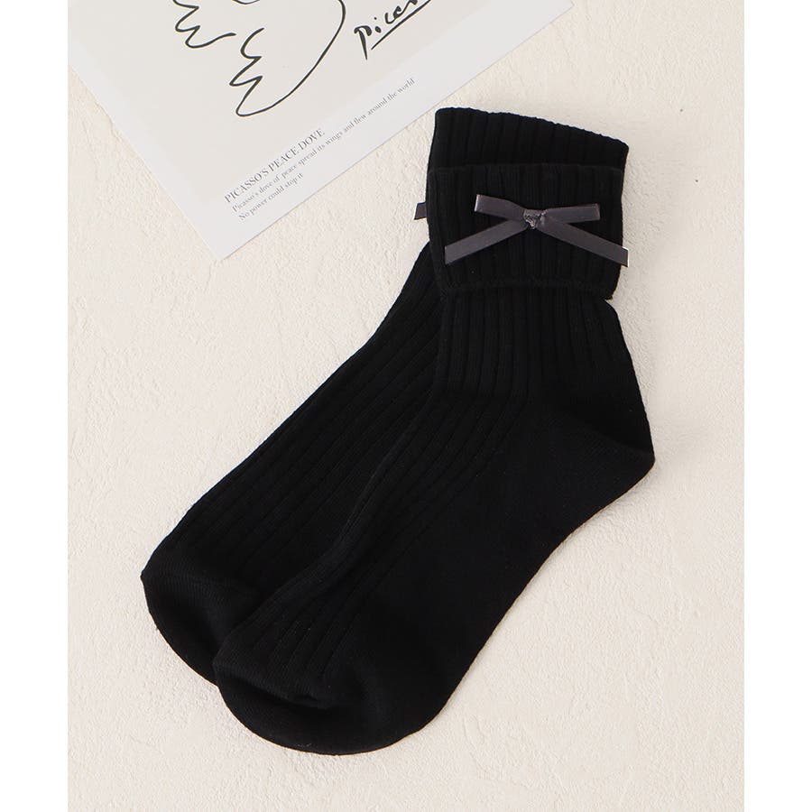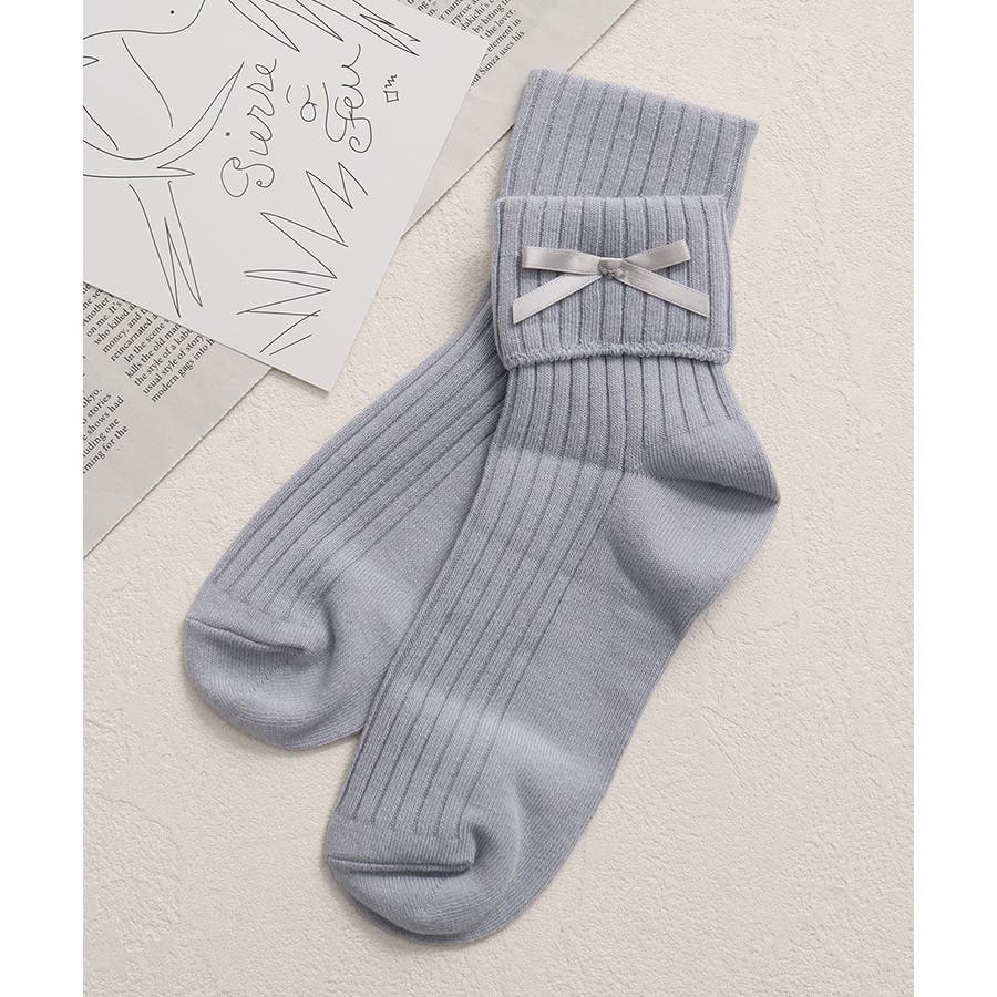 リボンモチーフがキュートなクルーソックス。