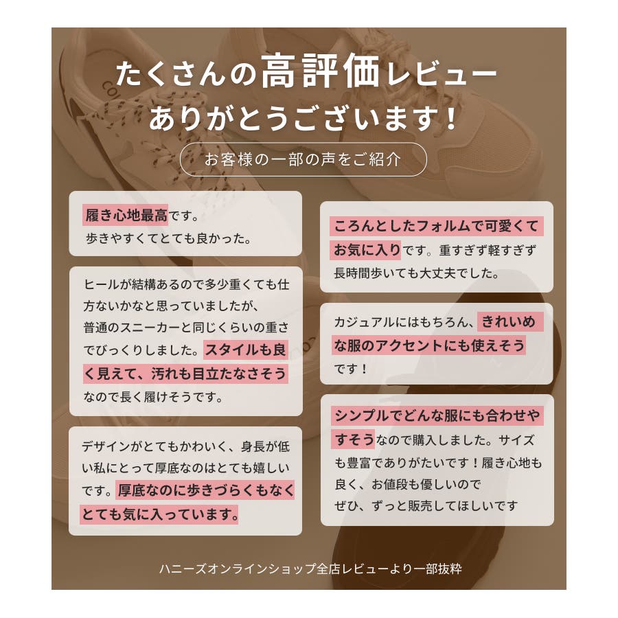 厚底だから重いかなって心配してたけど、思ってたより軽かったかな。さん (40代 / 女性 )購入アイテム:サイズ L カラー ホワイト足のサイズ:24.0cmサイズ感:ぴったり