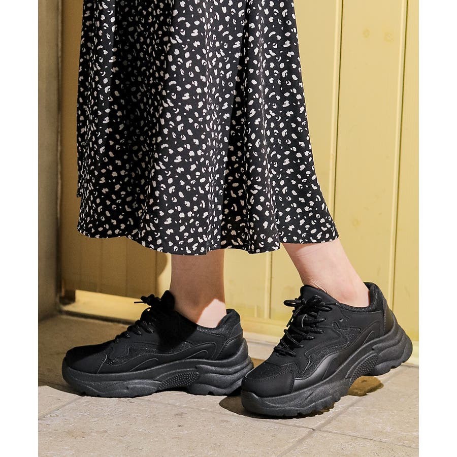 ボリュームのある厚底ソールがトレンドライクなデザイン。