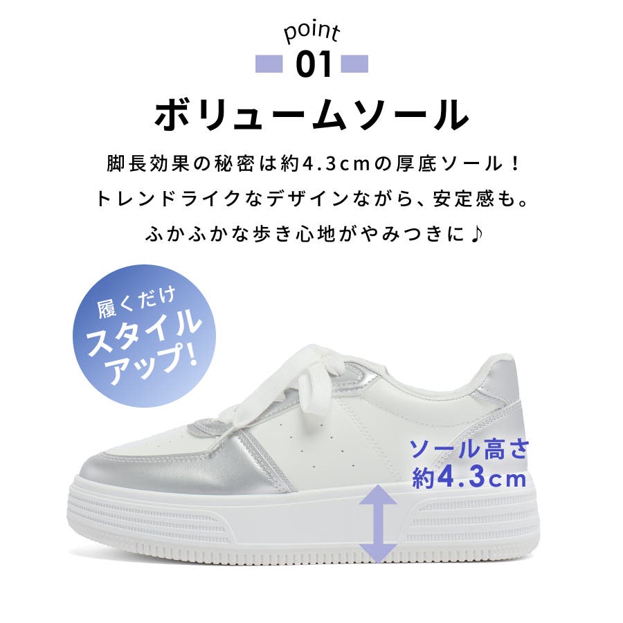 4.3cmの厚底で、歩きやすく安定感のある履き心地ながらスタイルアップ効果も◎