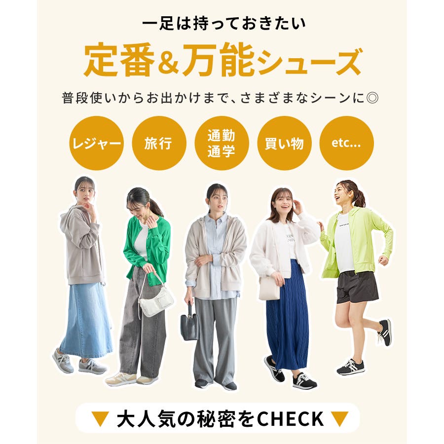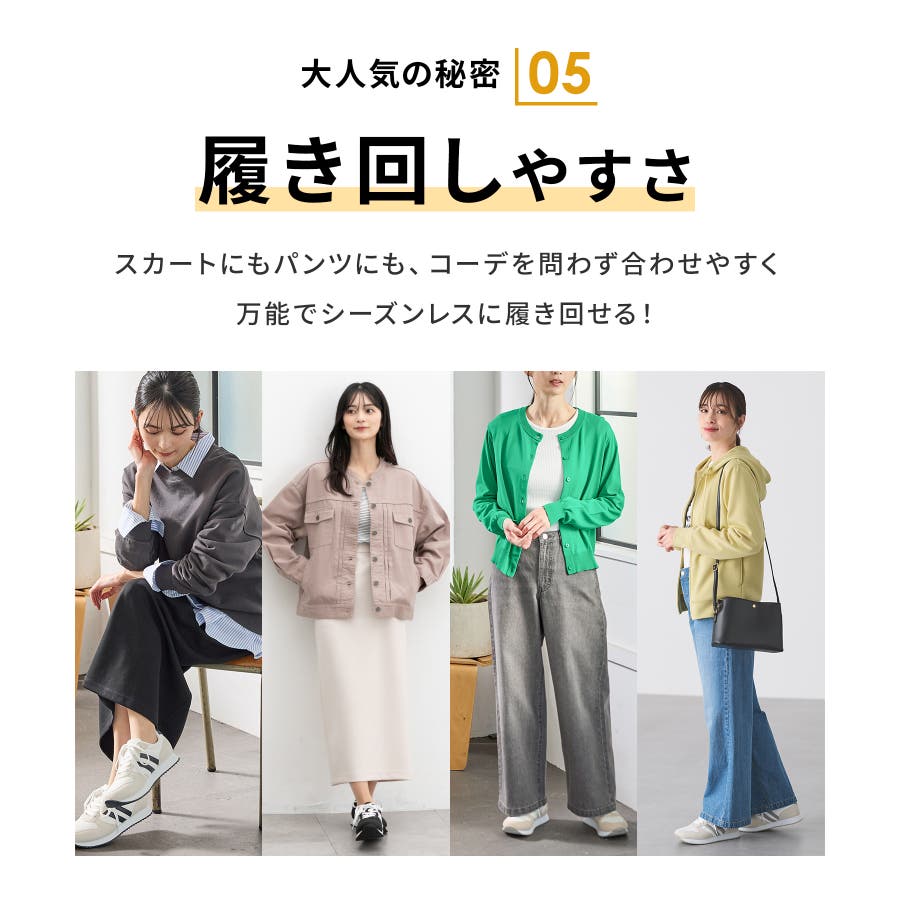 スポーツMixコーデはもちろん、ロングスカートやワンピース合わせのフェミニンスタイルにも好相性。