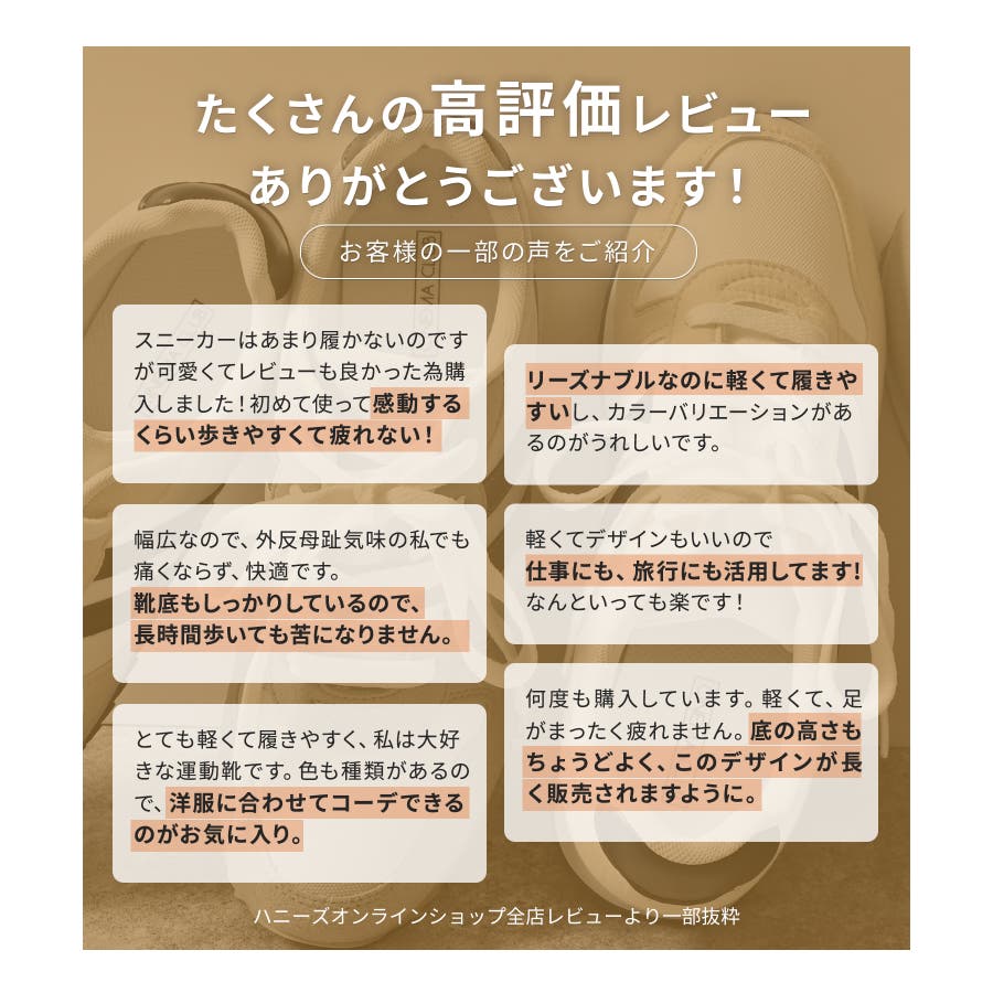 当たり障りなく、さっと履けるスニーカー探していたので丁度良かったです。さん (40代 / 女性 )購入アイテム:サイズ L カラー ブラック足のサイズ:23.5cmサイズ感:ぴったり - 歩きやすいです