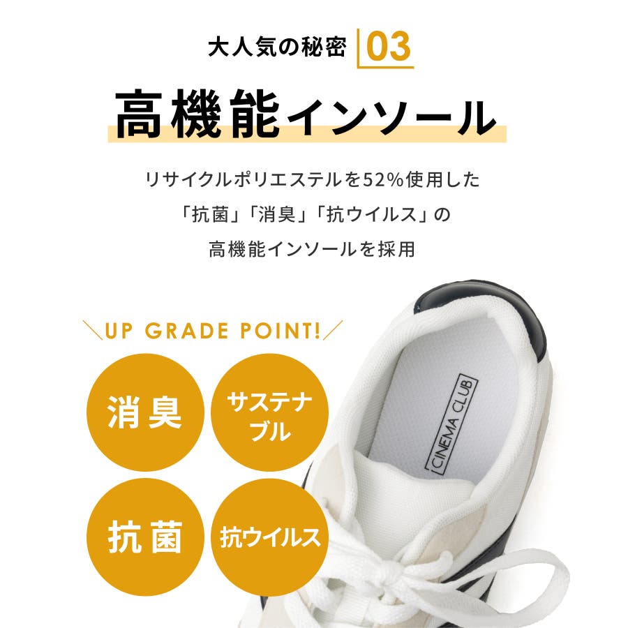 サステナブル素材を使用したインソールは、特定の細菌の増殖を抑制する『抗菌』、気になるニオイを抑える『消臭』、特定のウイルスの数を減少させる『抗ウイルス』と、機能性抜群。