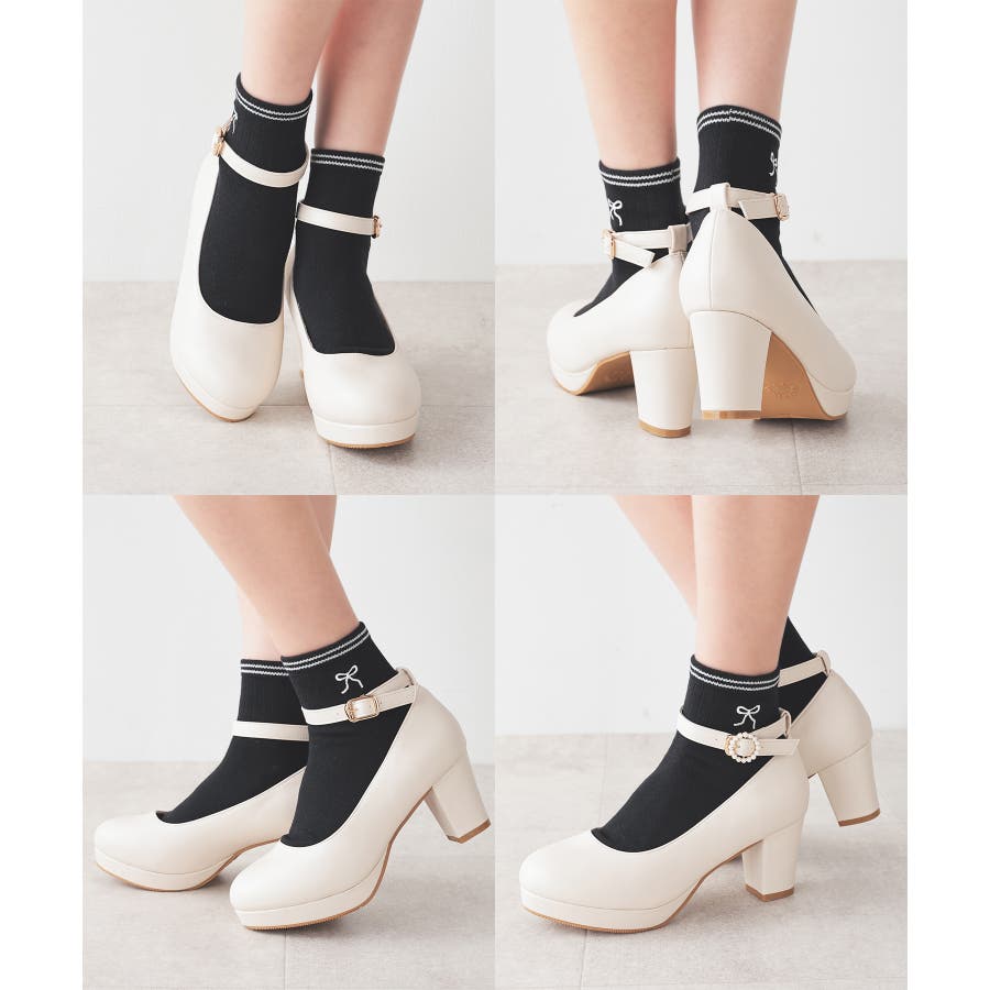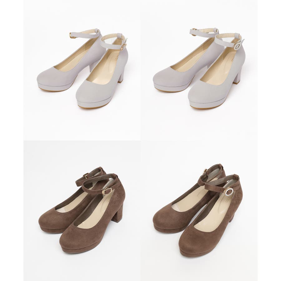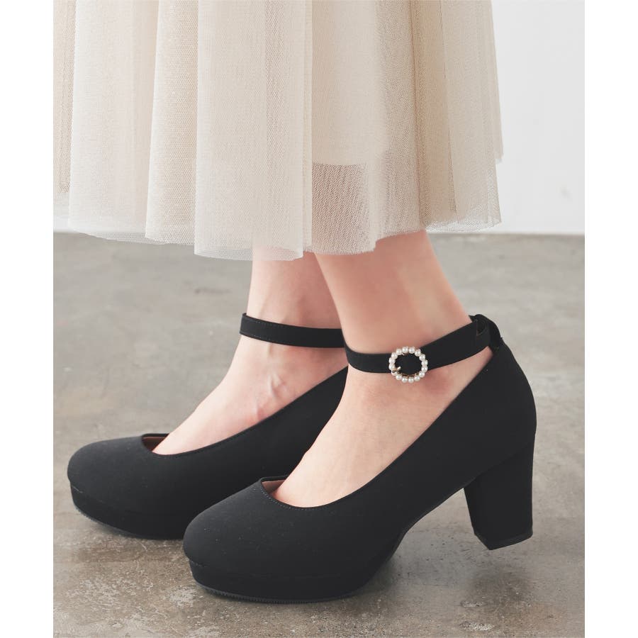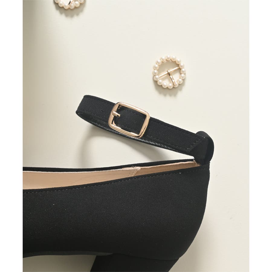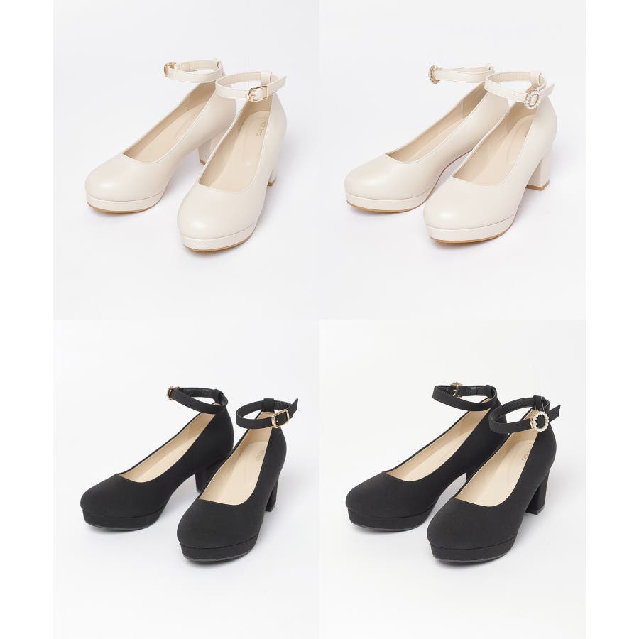 ストラップのバックルが、シンプルな角バックルとパールビジューバックルの2種類。