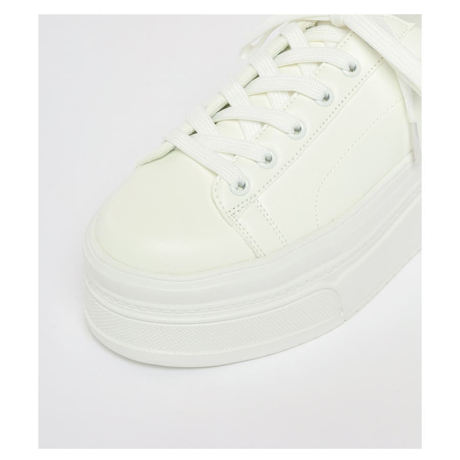 スポーティーなコートソールを厚底タイプでフェミニンに仕上げたデザイン。