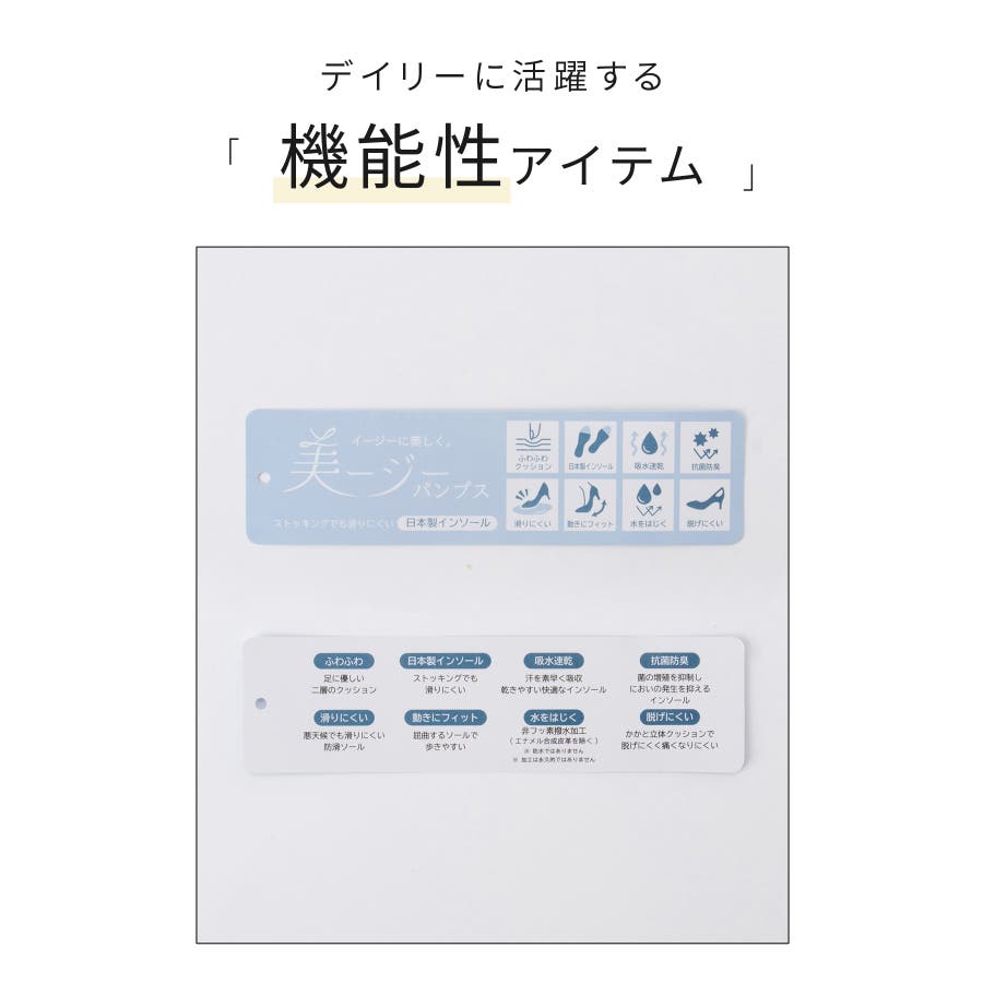 インソールはストッキングが滑りにくい防滑素材の日本製で、二層のふわふわクッションに『吸水速乾』『抗菌防臭』の機能をプラス。