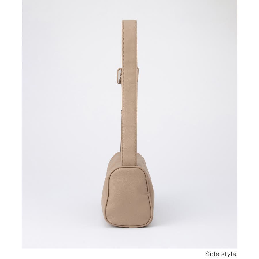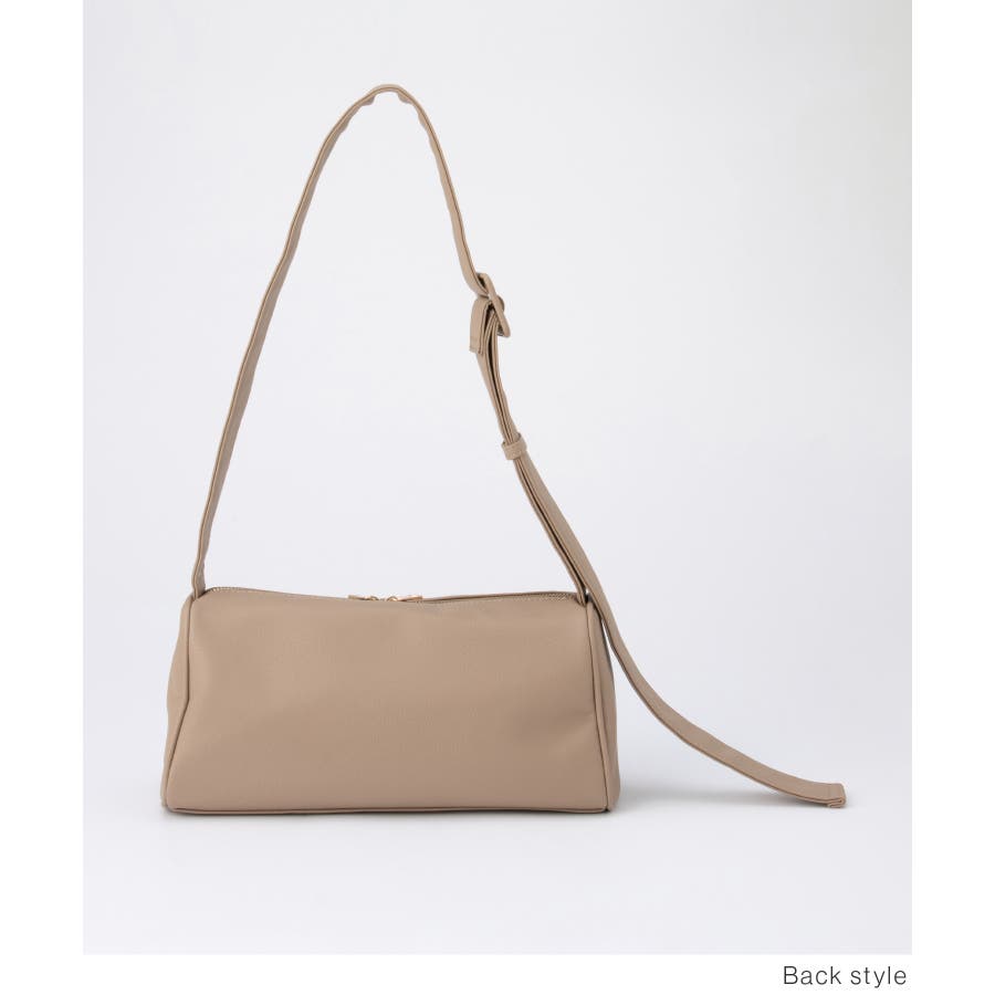 長さ調整可能なショルダーは、縮めたときに端を底面のループに通してすっきり収納可能。