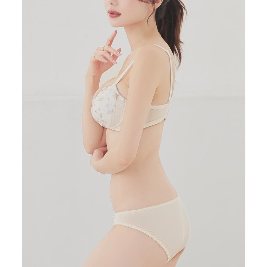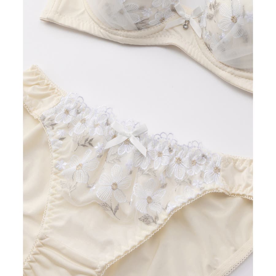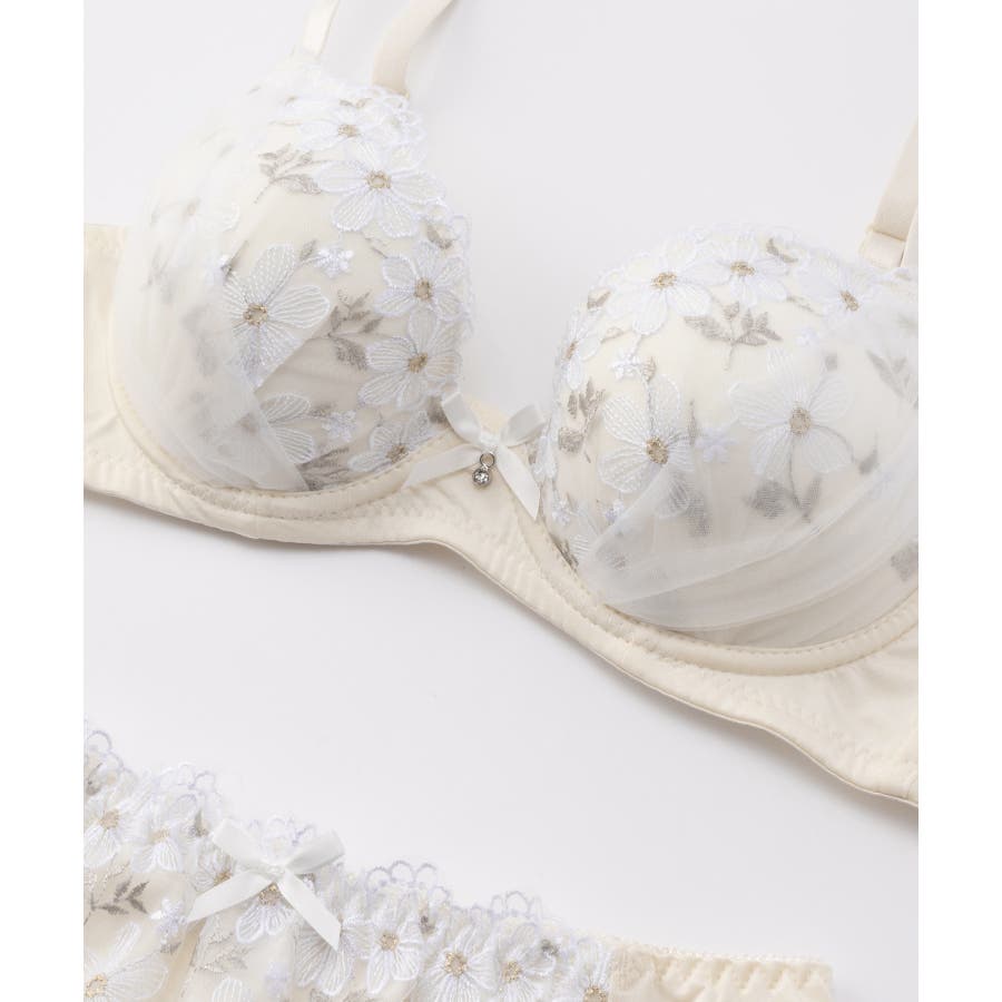 ラメ入りの花柄刺繍がフェミニンなブラセット。