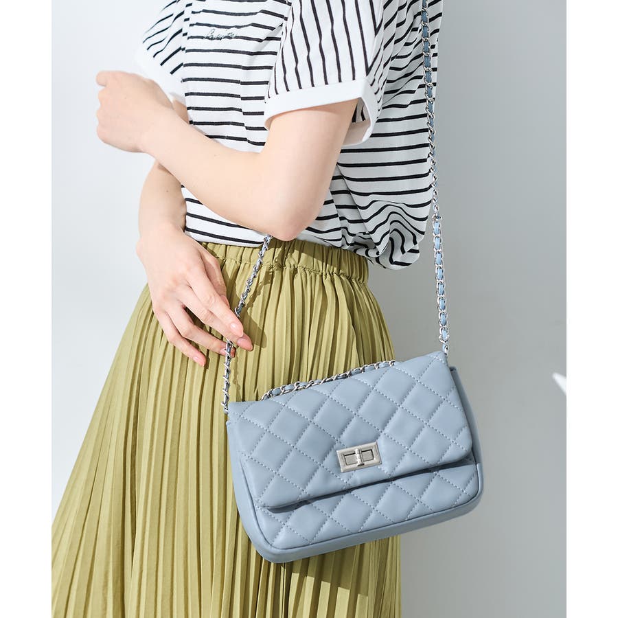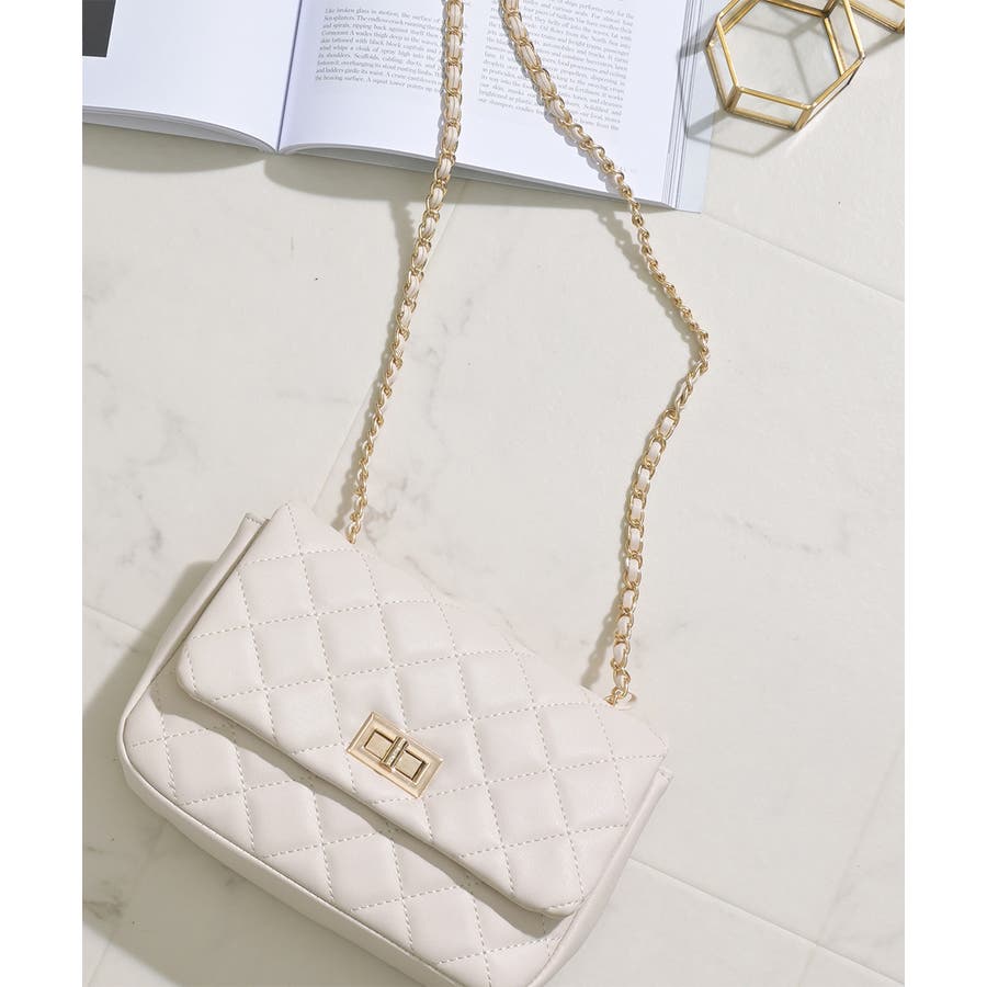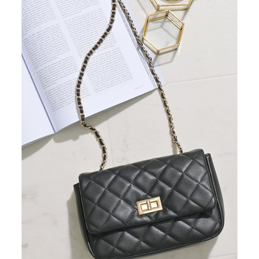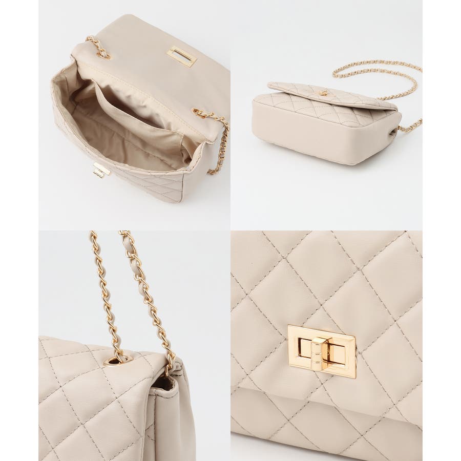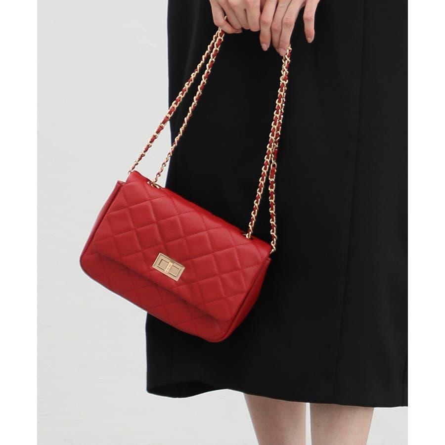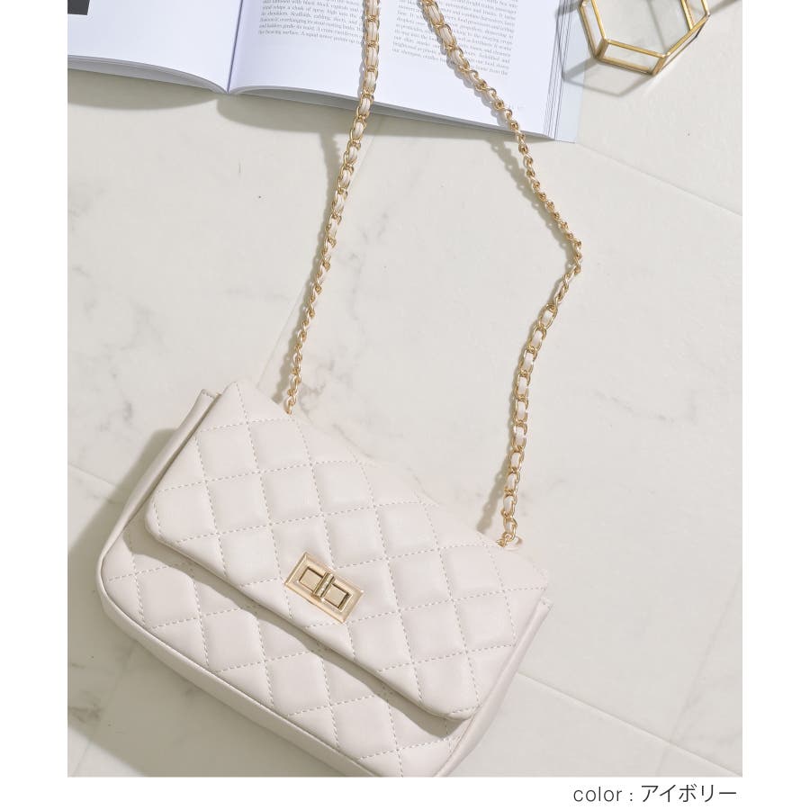 ダイヤ型のキルティングステッチにフラップ付きのフェミニンなデザイン。