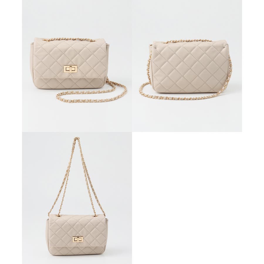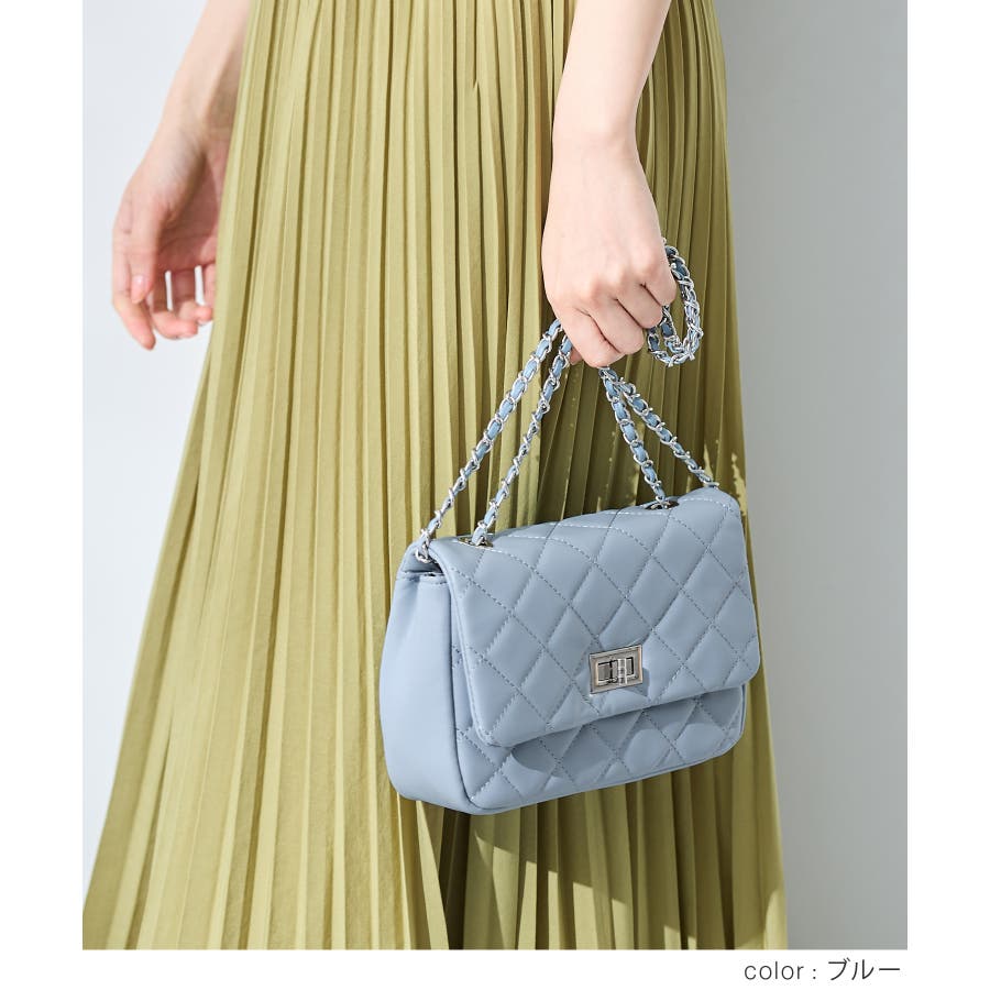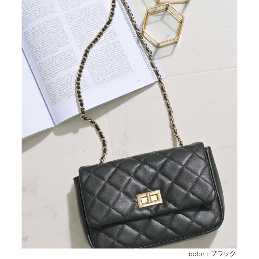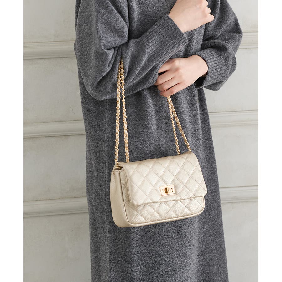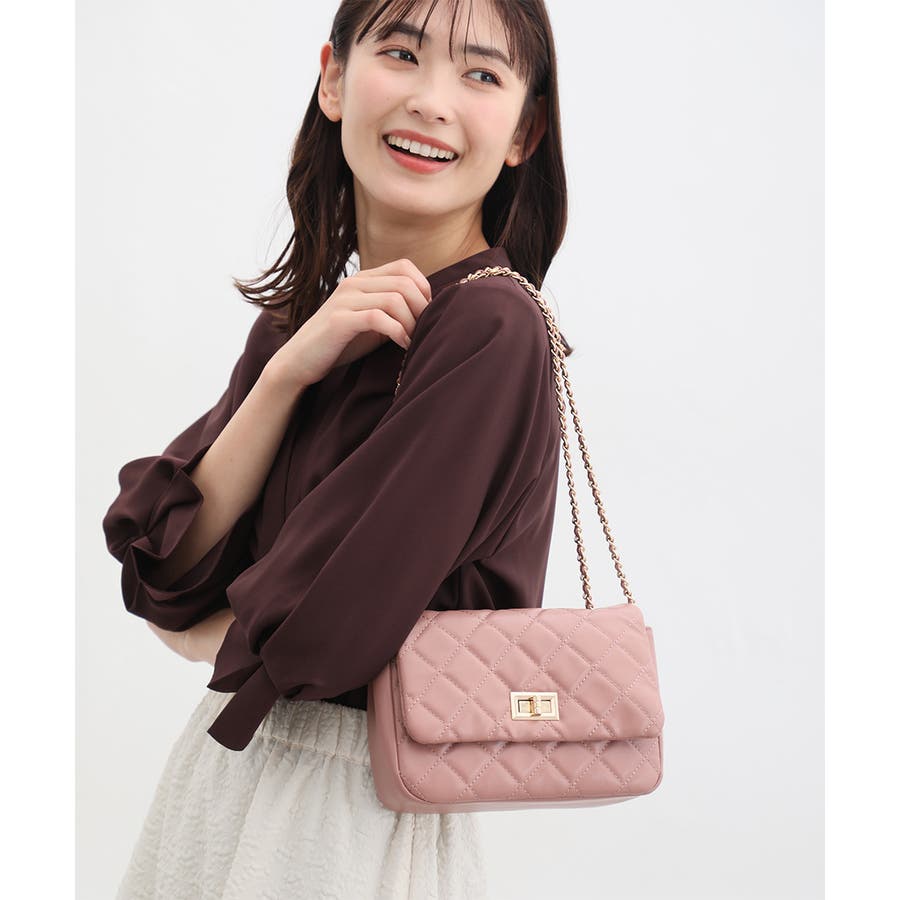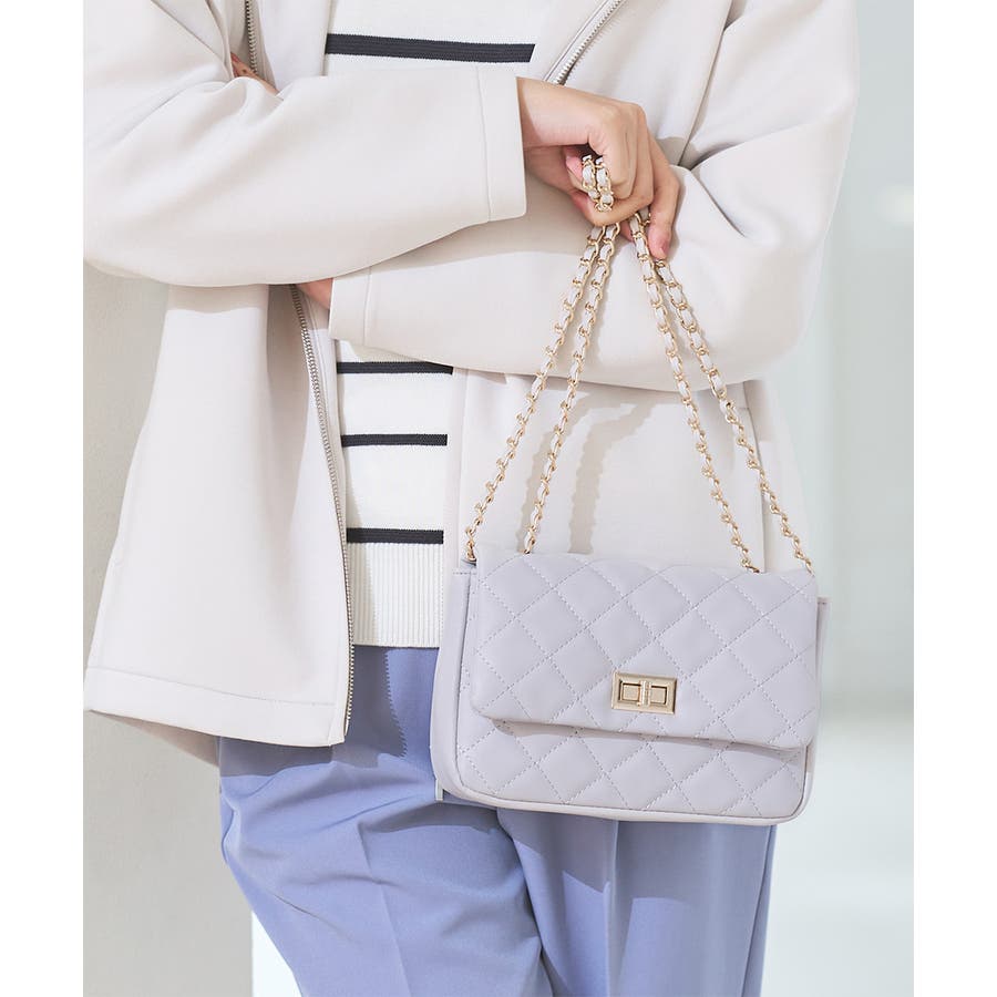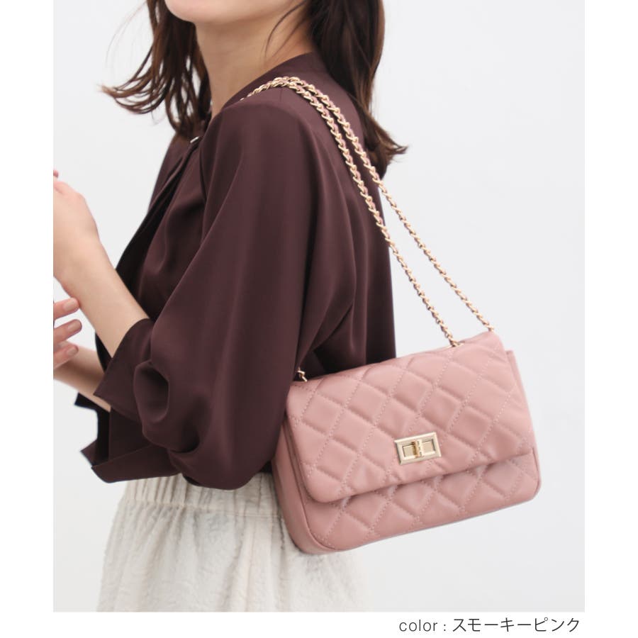 ダイヤ型のキルティングステッチにフラップ付きのフェミニンなデザイン。
