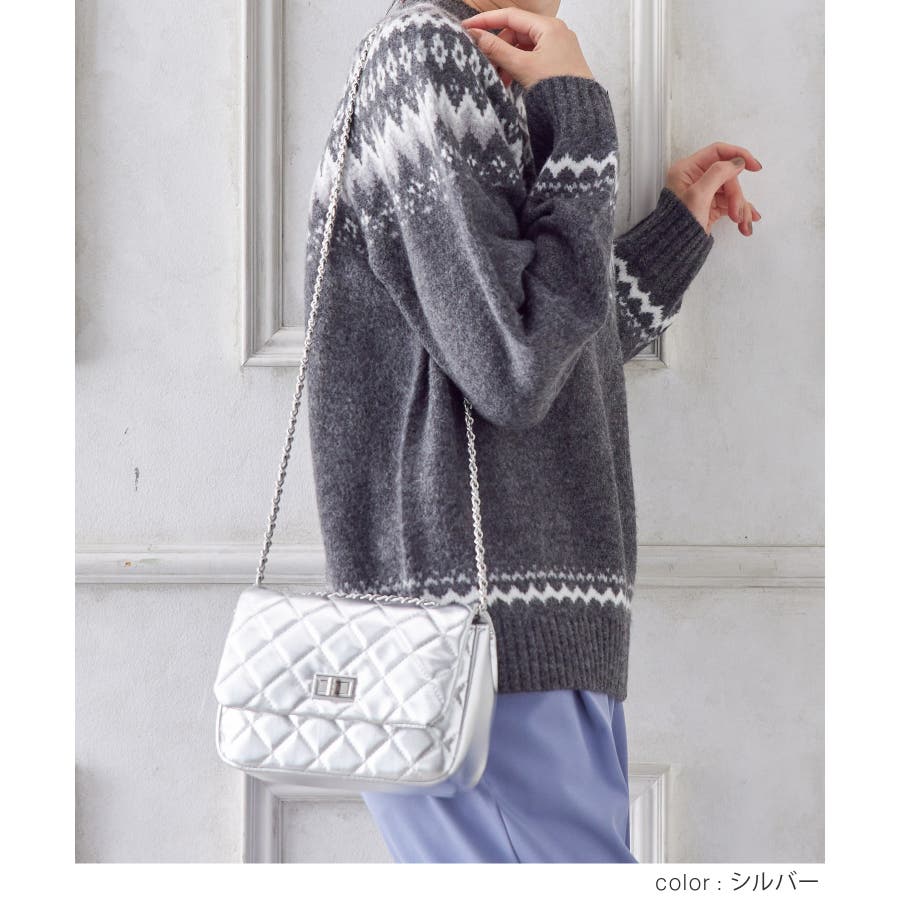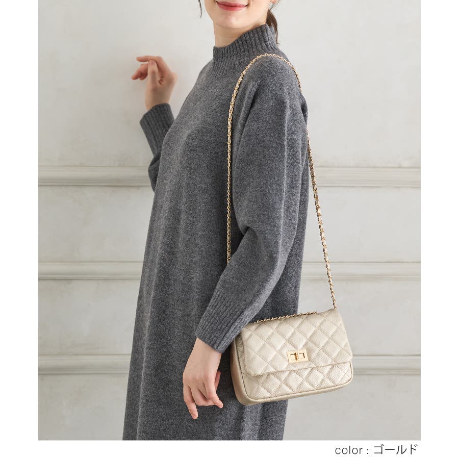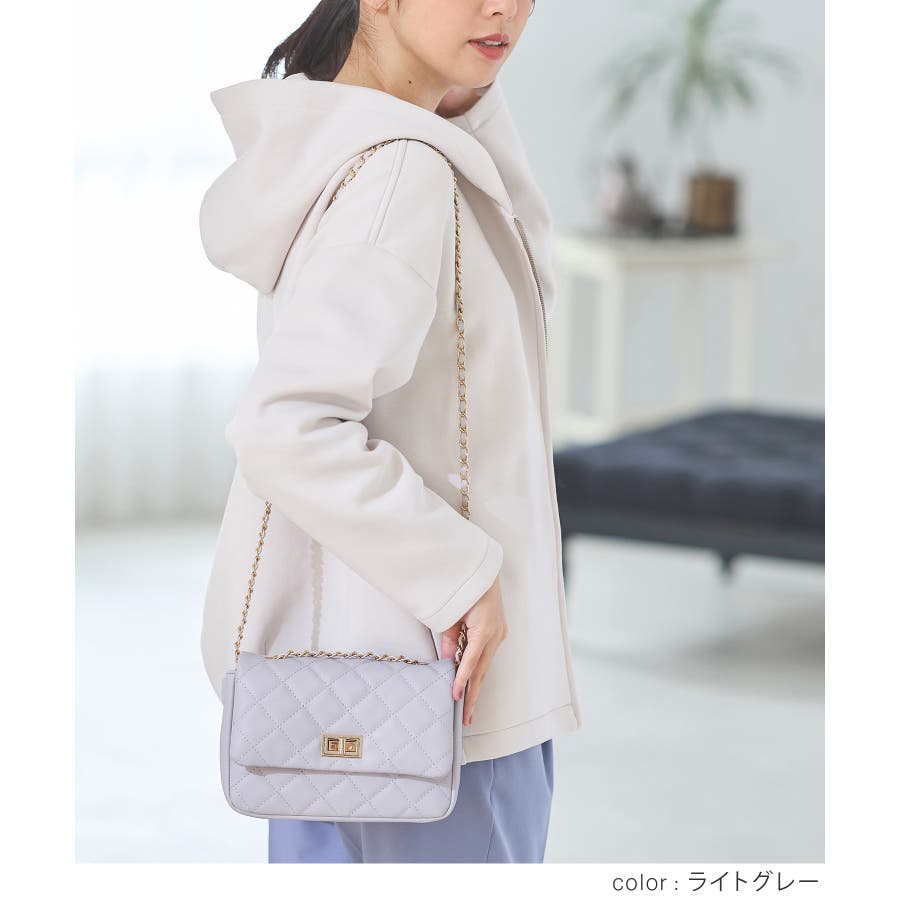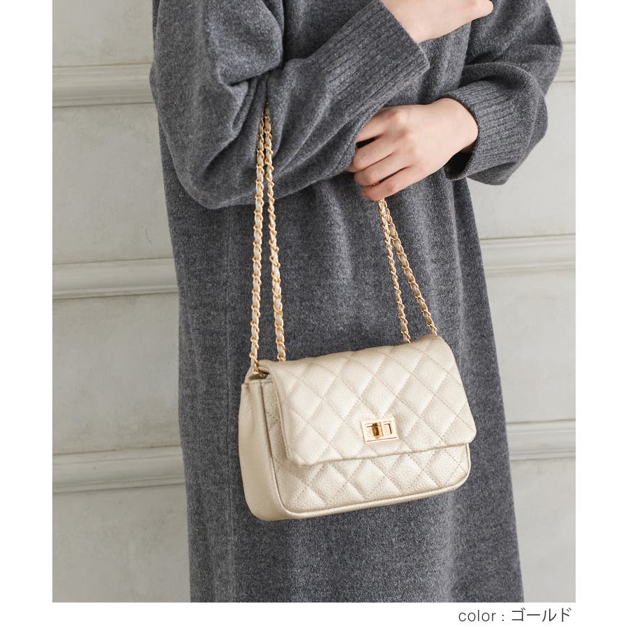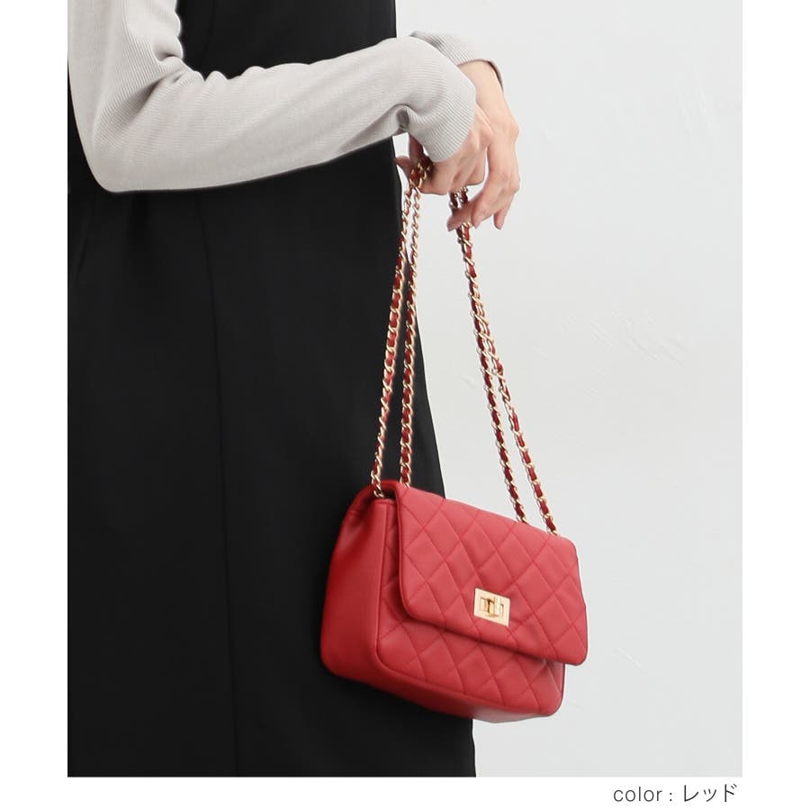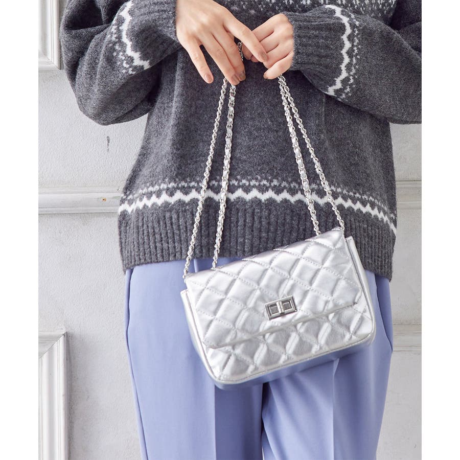 ダイヤ型のキルティングステッチにフラップ付きのフェミニンなデザイン。