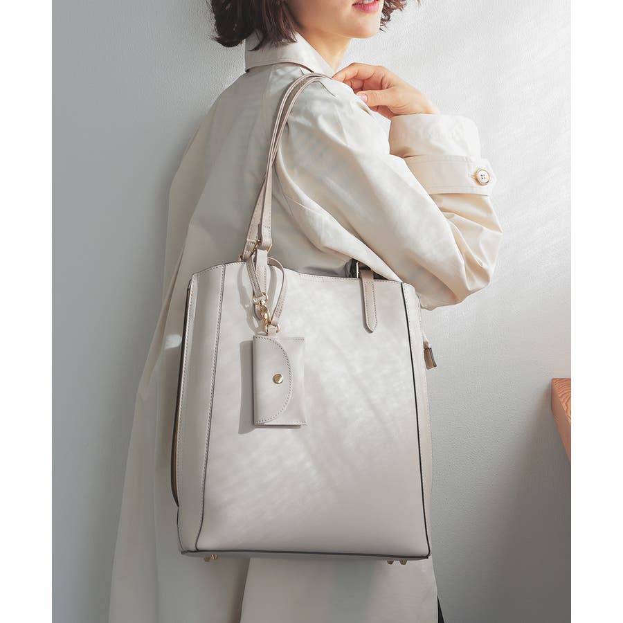 長さの異なる持ち手付きで肩掛けにもなる2Way仕様。