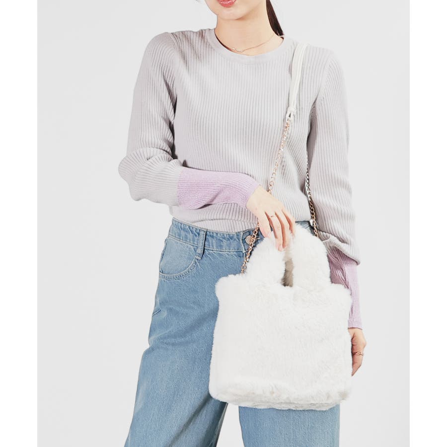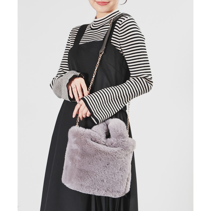 秋冬ムード漂う、手触りのよいフェイクファー素材。