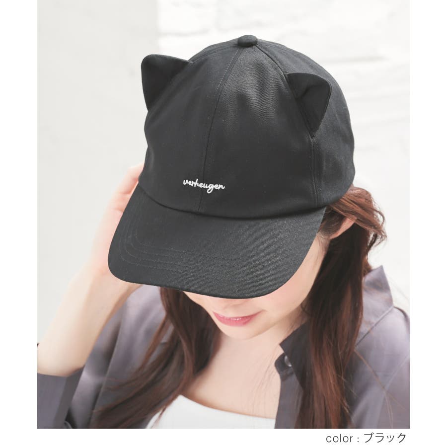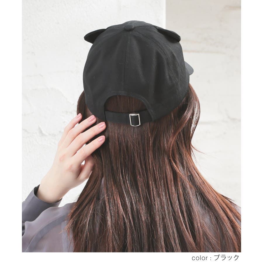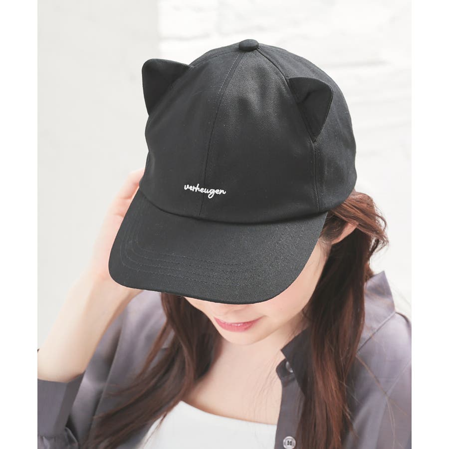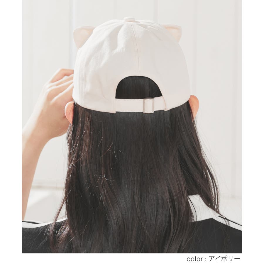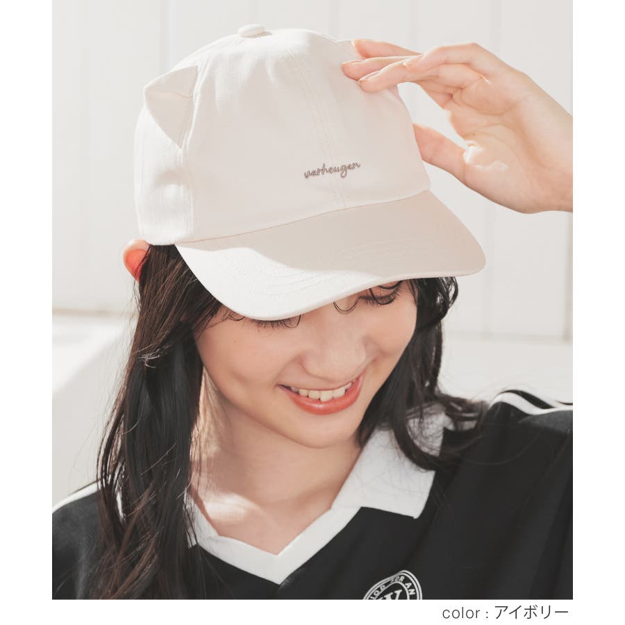 カジュアルな印象のキャップにネコ耳が付いたガーリーなデザイン。