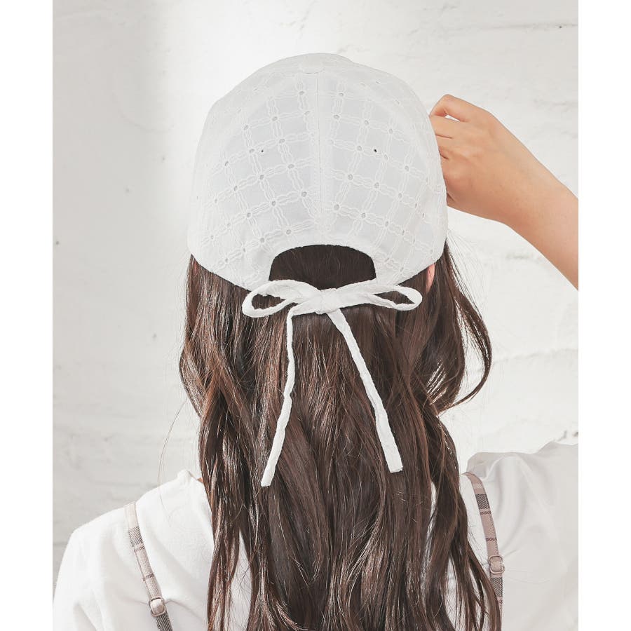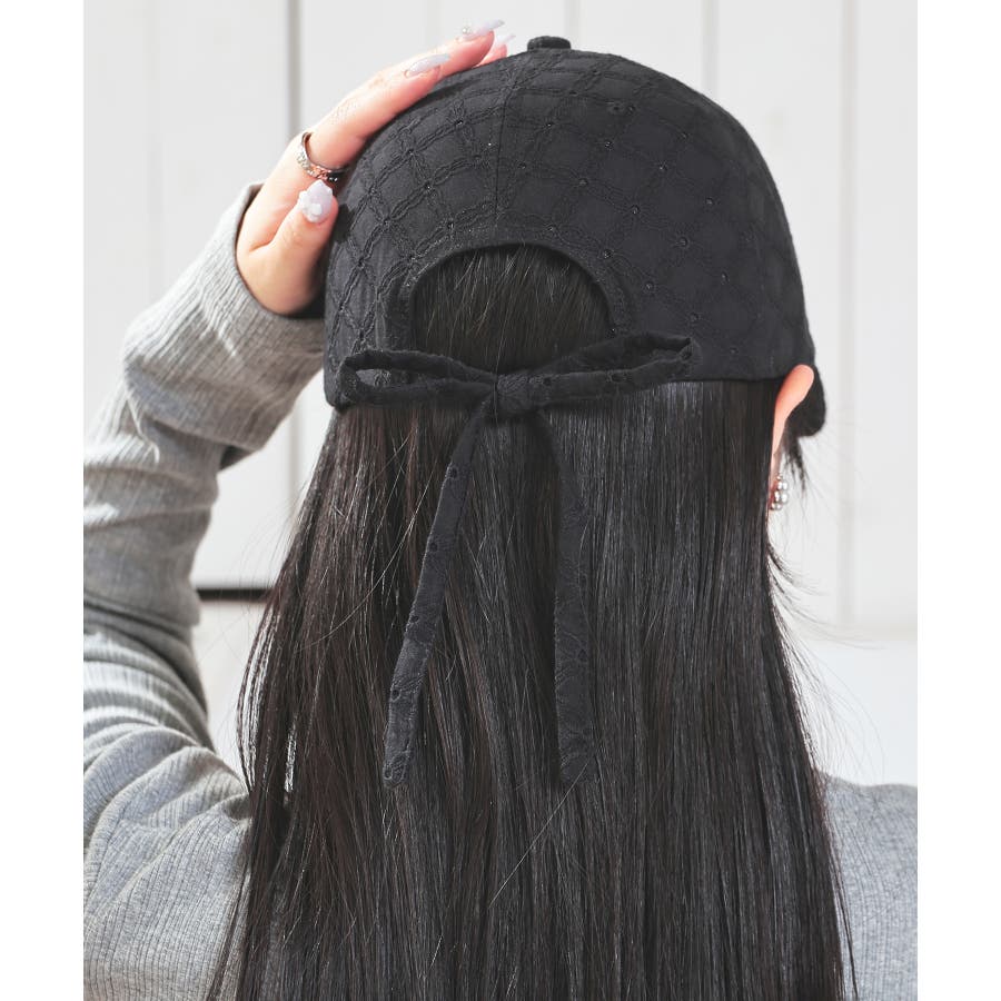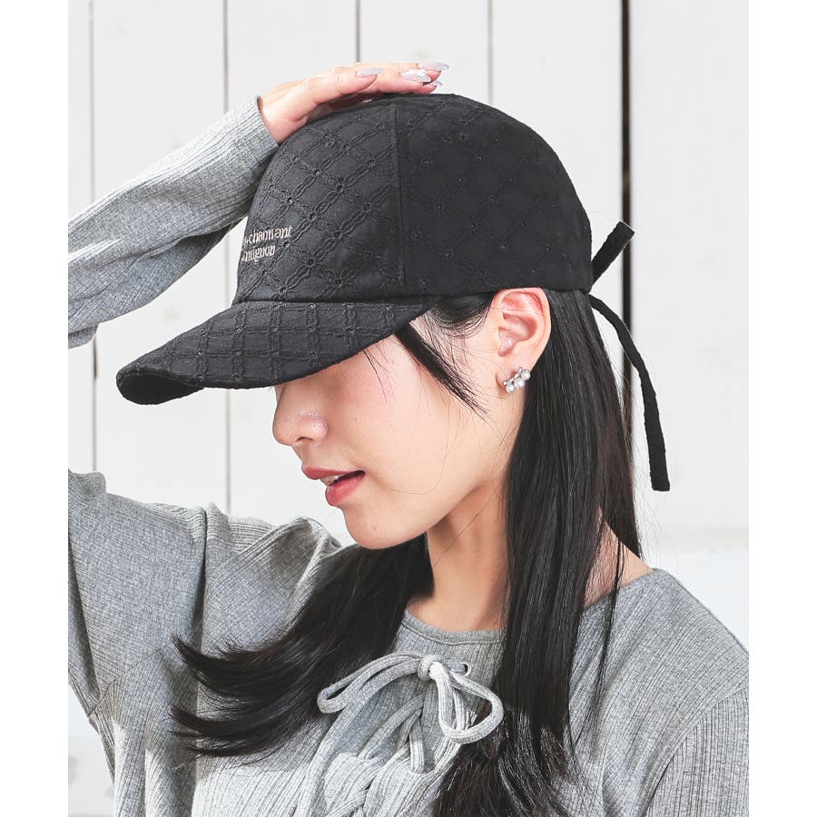 カジュアルな印象のキャップながら、バッグリボンがさりげなくガーリーなデザイン。