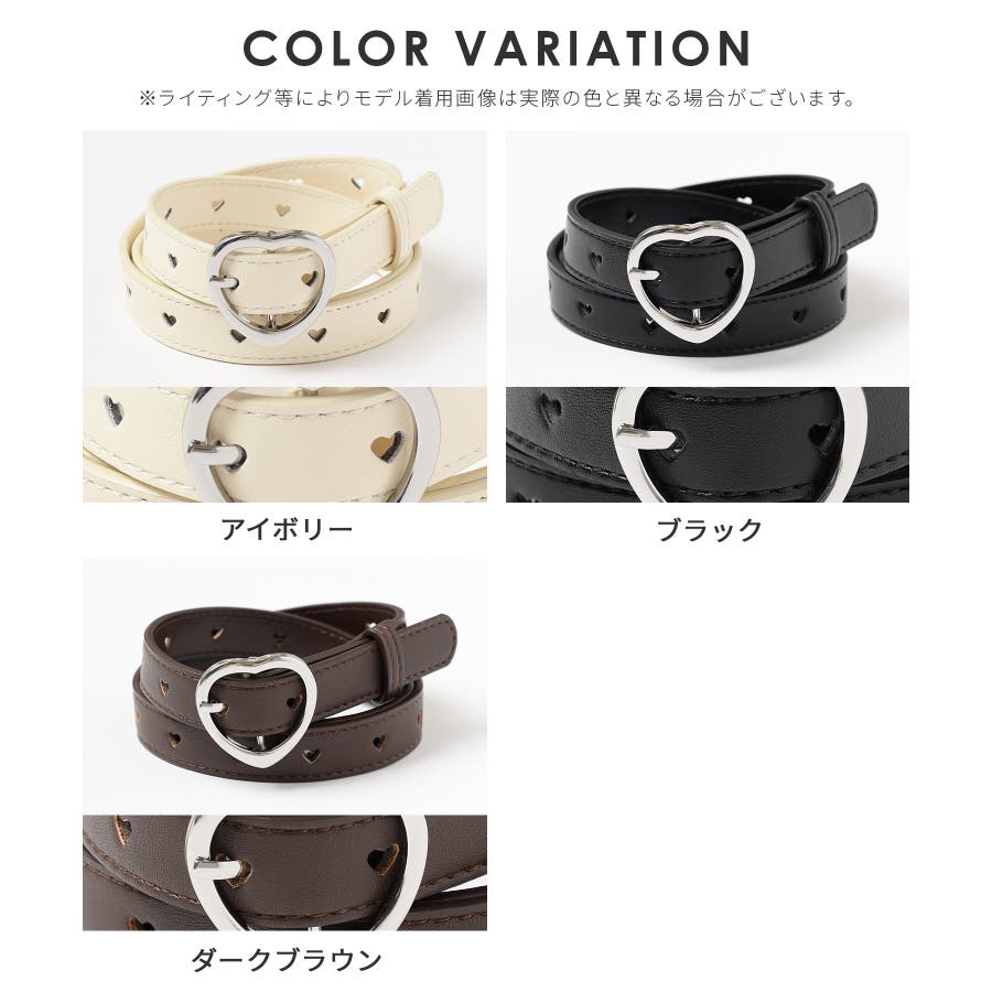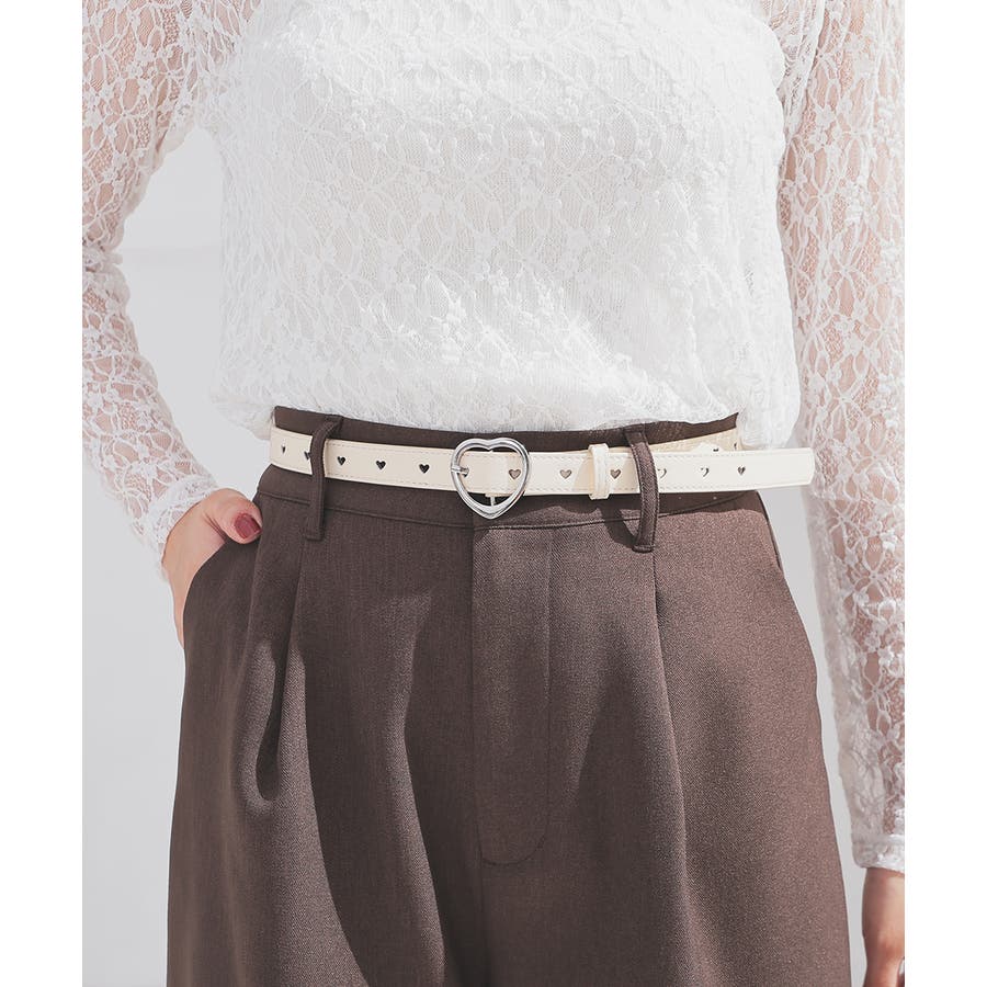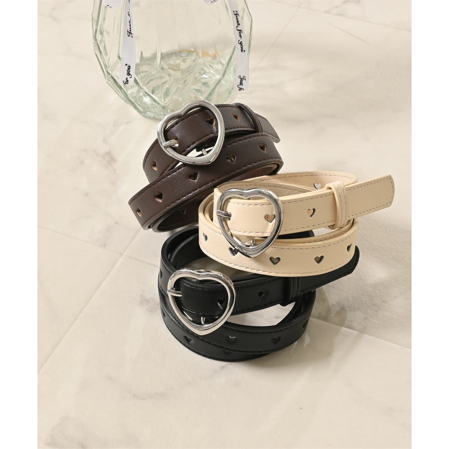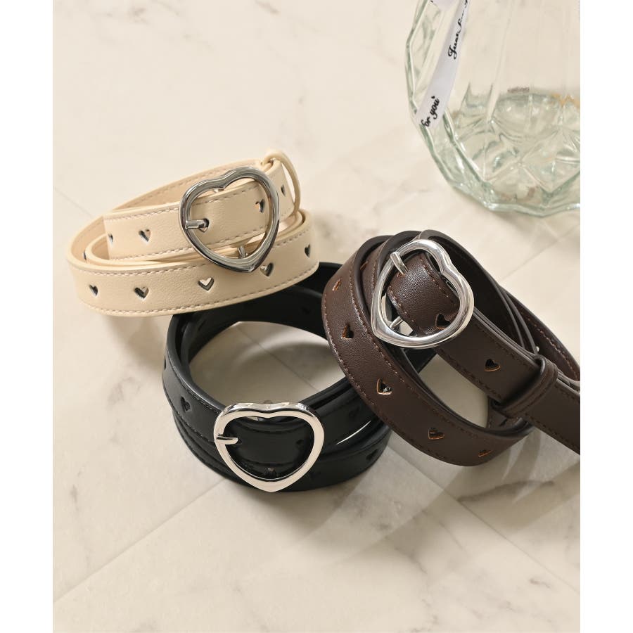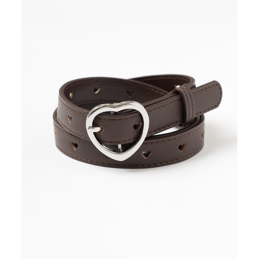 バックルとホールがハート型の、普段のコーデに遊び心を加えるキュートなデザイン。
