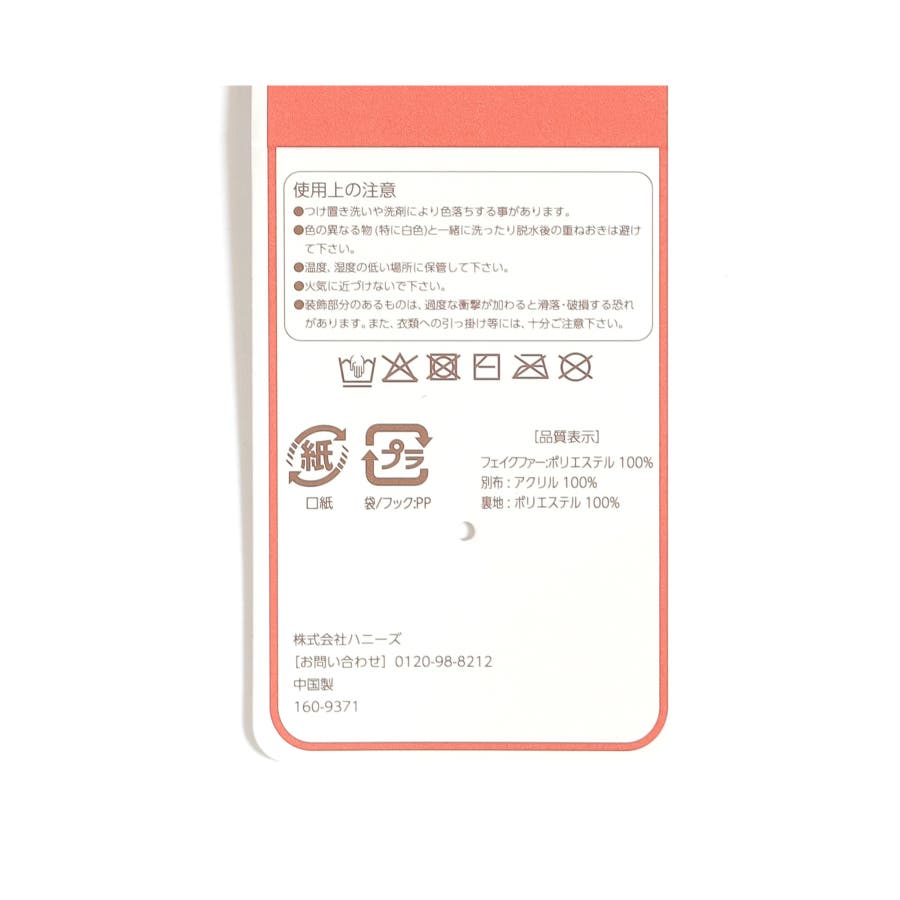 ●品質/フェイクファー ポリエステル 100%・別布 アクリル 100%・裏地 ポリエステル 100%
