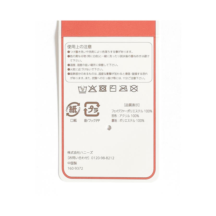 ●品質/フェイクファー ポリエステル 100%・別布 アクリル 100%・裏地 ポリエステル 100%
