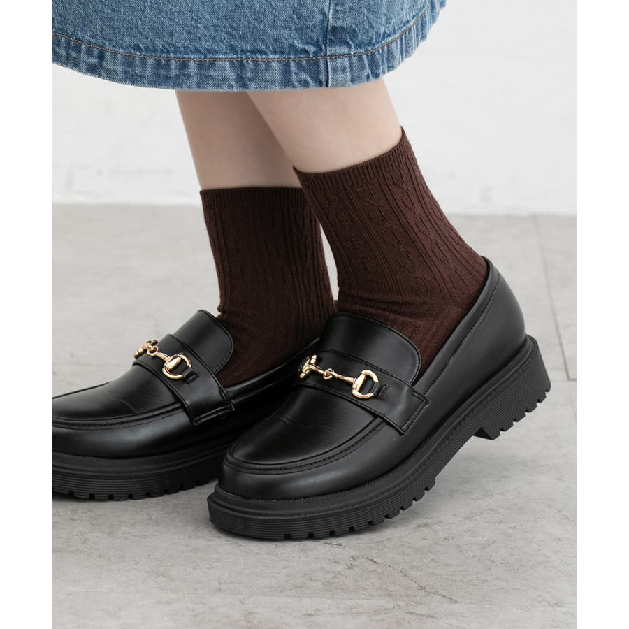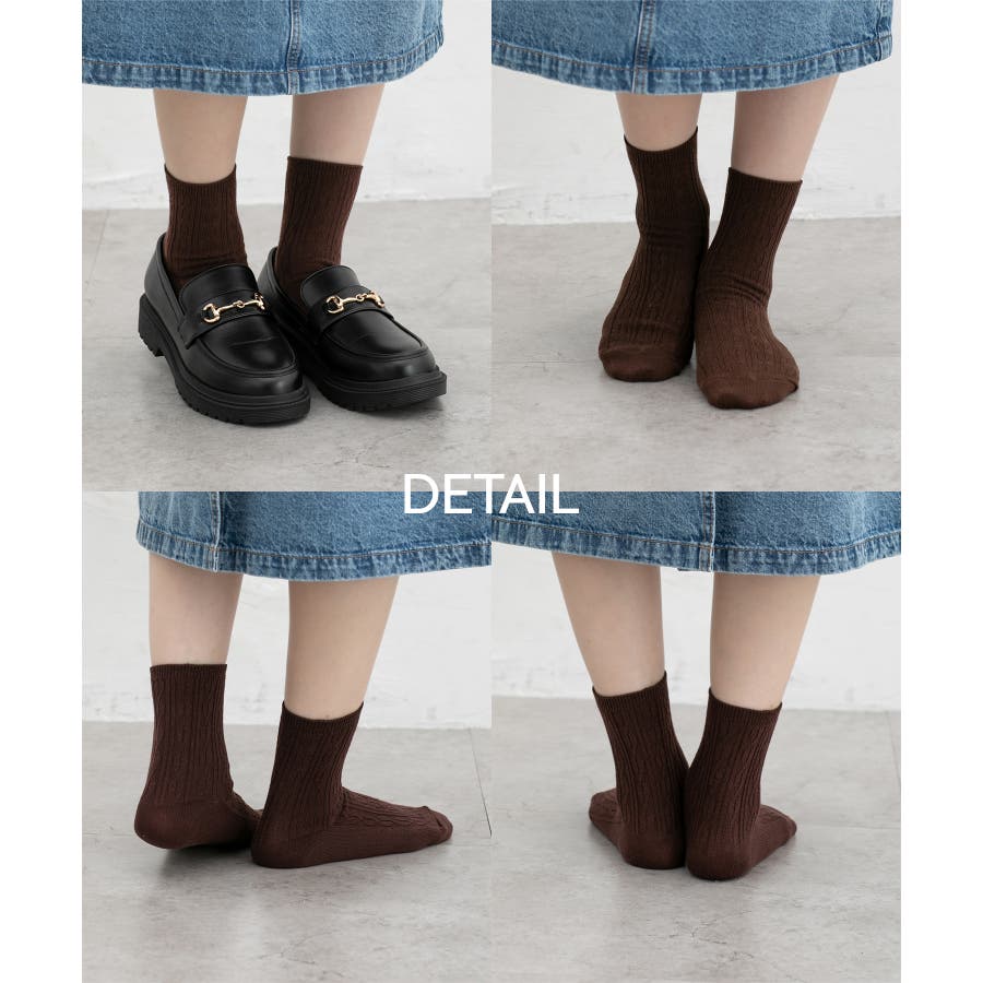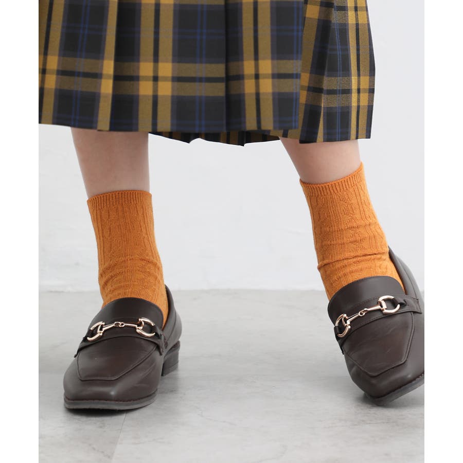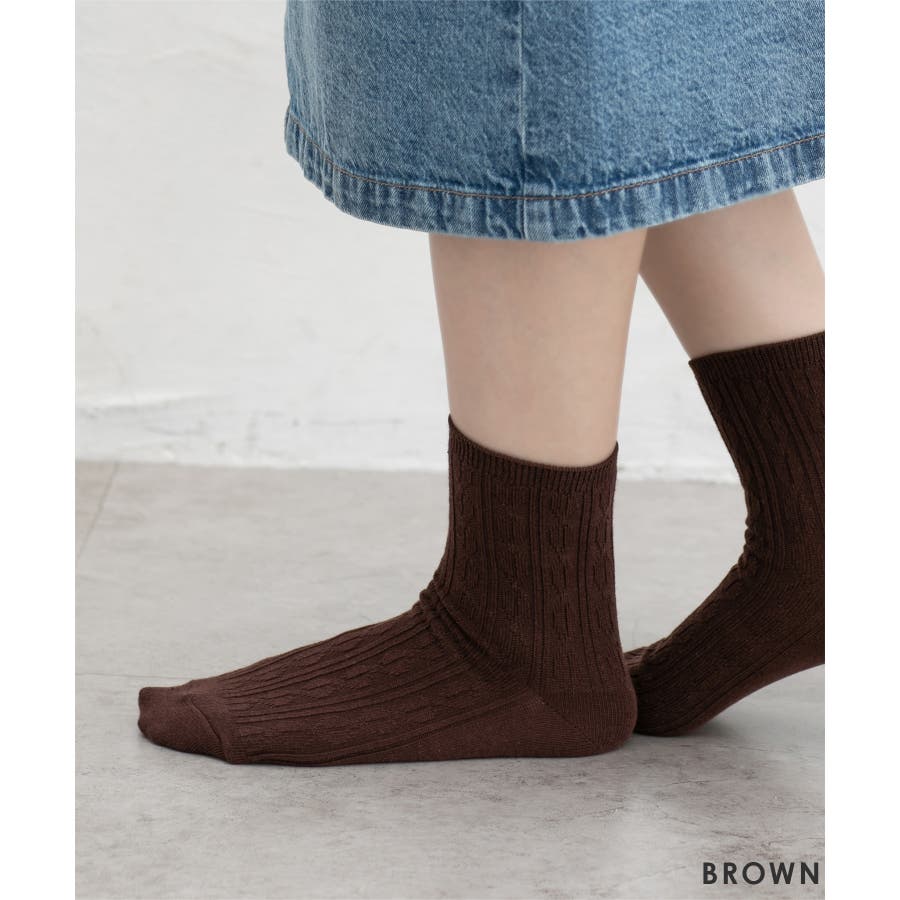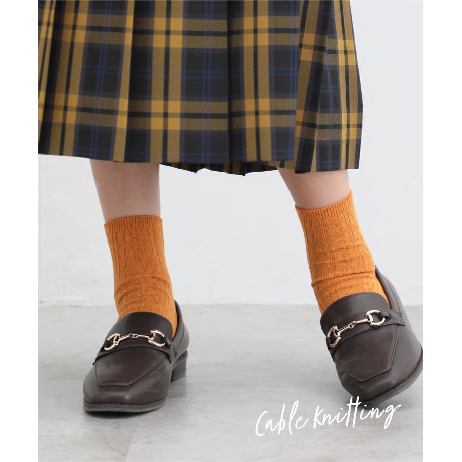 立体感のあるケーブルの編み柄がナチュラルな雰囲気の、エイジレスで履けるシンプルなデザイン。