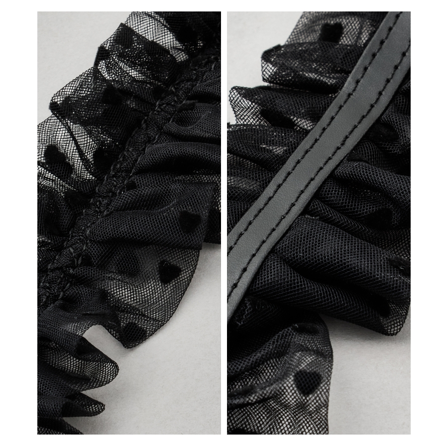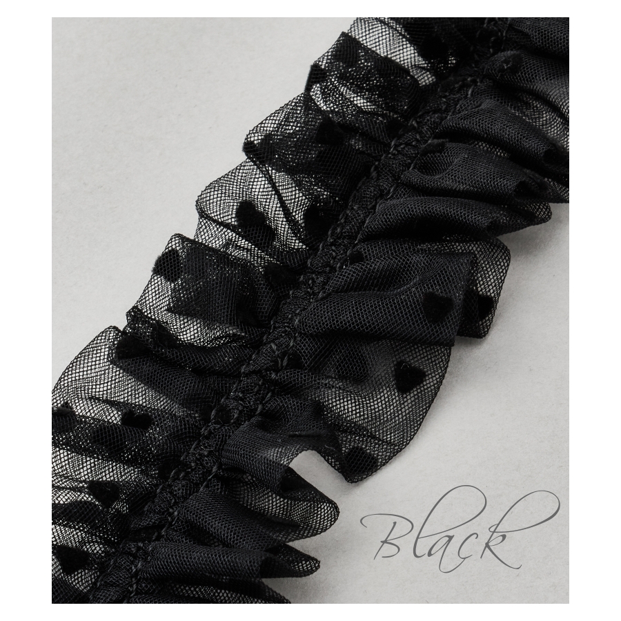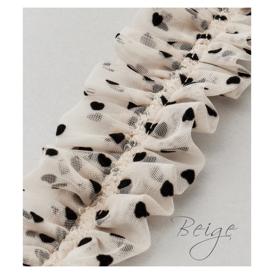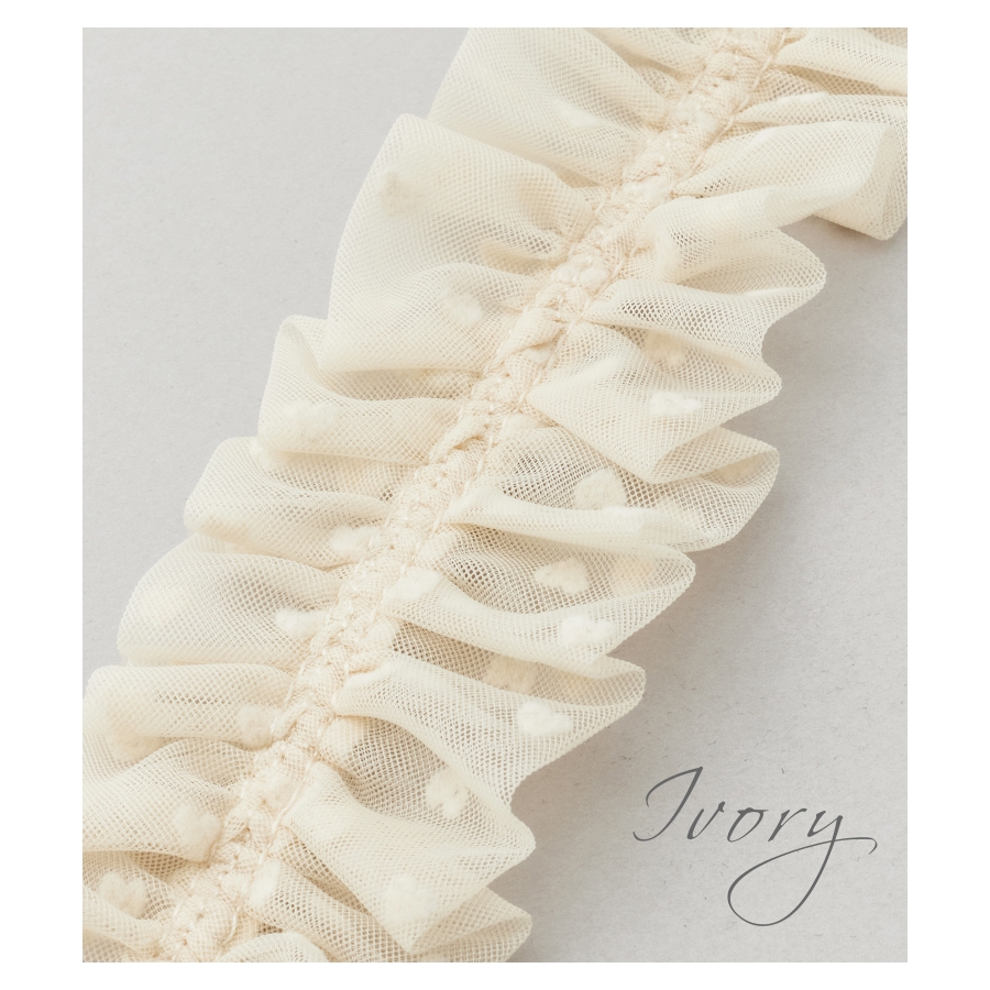 ハート柄入りのチュールをフリルにしたキュートなデザイン。