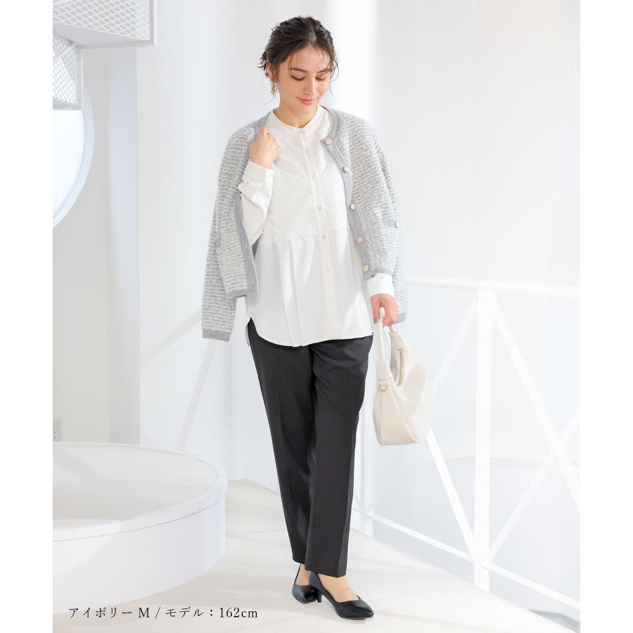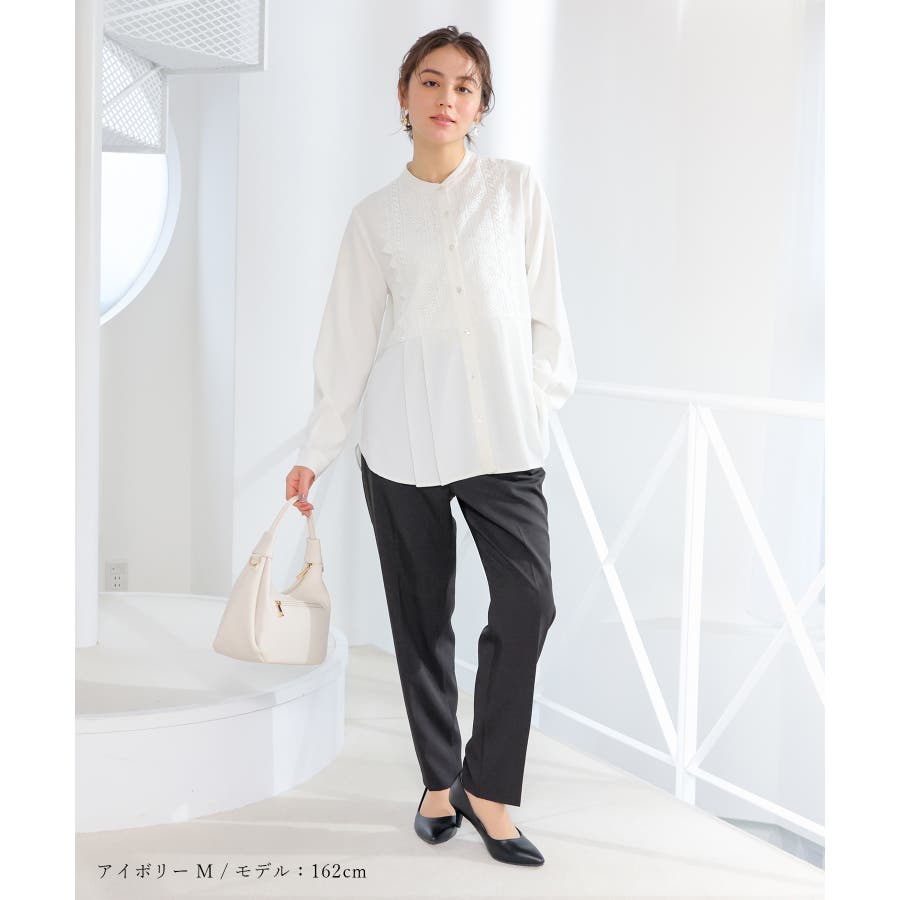 商品カテゴリ:4570610224 トップス ブラウス 長袖 再生ポリエステル フロントレース ジョーゼット素材 タック 無地 フロントボタン バンドカラー フェミニン オールシーズン 白 カテゴリ105010 tops ブラウス長袖 長そで リサイクル 再生ポリ 環境保護 サスティナブル サステナブル エコ ジョーゼット 無地ブラウス 前ボタン 前開き 前釦 ボタン 後ろ下がり ラウンドヘム 前後差 きれいめ 上品 可愛い おしゃれ 清楚 大人可愛い タグGluタグ(G-10-H) Sサイズ S 小さいサイズ Mサイズ Lサイズ LLサイズ LL 大きいサイズ FP601 大人 30代 40代 50代 60代 ミセス 大人カジュアル こなれ ママ 垢抜け シーズンオール 春 春物 春服 春夏 夏 夏物 夏服 秋 秋物 秋服 秋冬 冬 冬物 冬服 新作 新着 アイボリー ホワイト ネイビー 紺 ブルー 青 スモーキーブルー グレージュ グレー 灰色 ベージュ 肌色 224 457-61-0224 4570610224 GLACIER lusso グラシアルッソ honeys ハニーズ レディースファッション ladies fashion 女性 女 レディース ファッション 女性服 服 婦人服 457061022431 フロントレースブラウス 価格3980