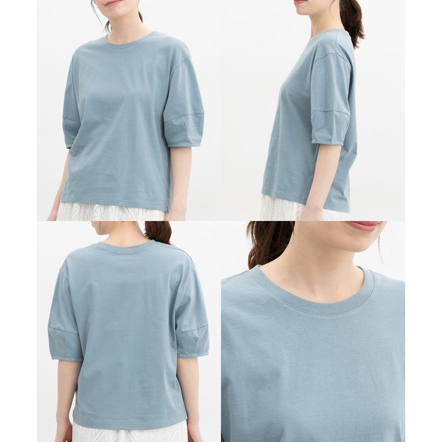 開きすぎないクルーネックに、二の腕もしっかりカバーする、ぽわんとしたランタンスリーブが大人可愛いデザイン。