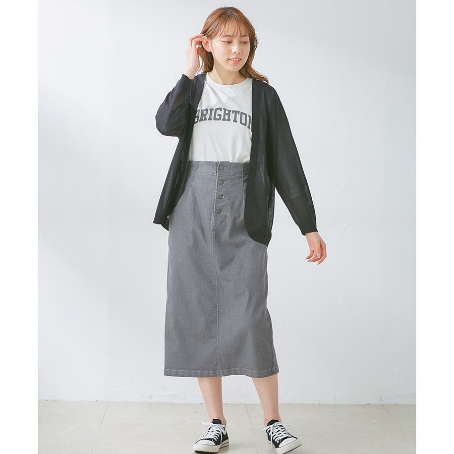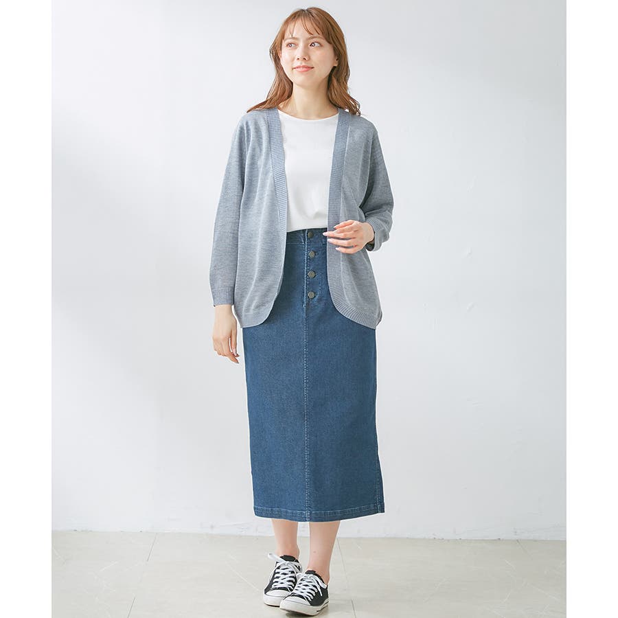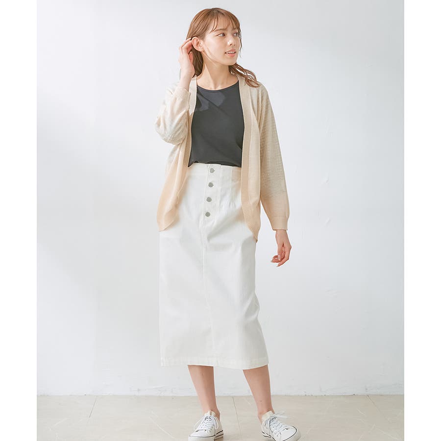 気になる腰回りやヒップをカバーしてくれる丈感でパンツにもスカートにも好相性。