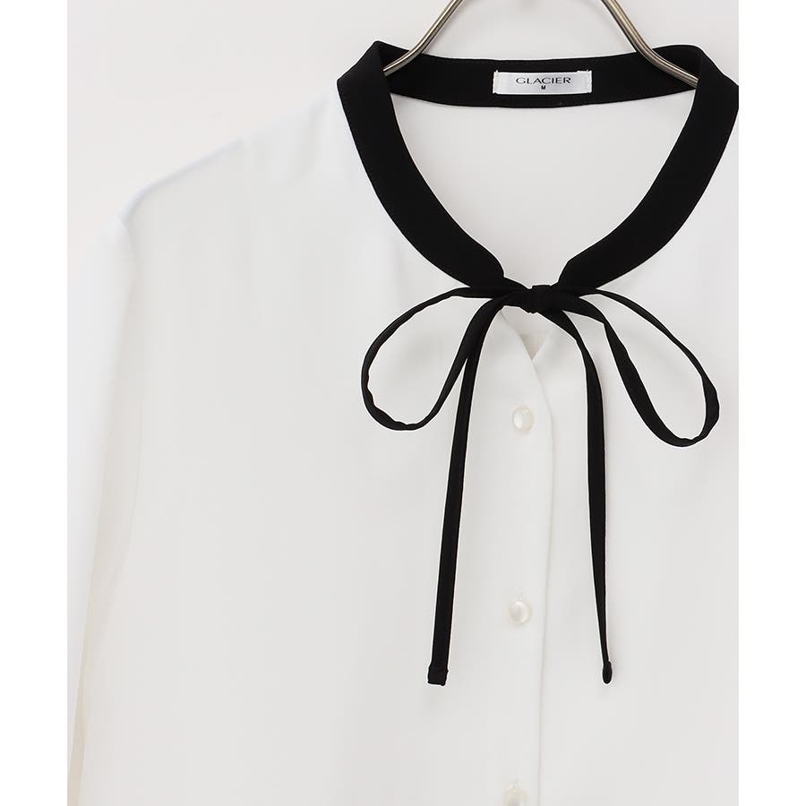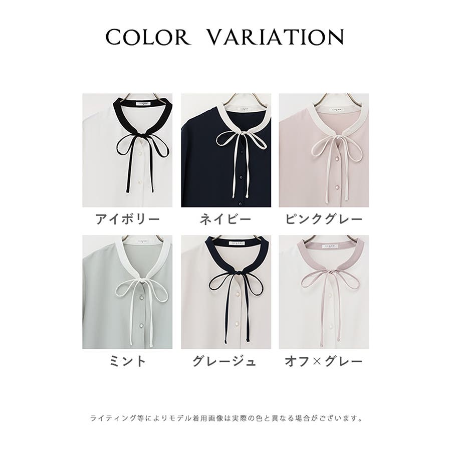 バンドカラーにシックな配色リボンをプラスした大人可愛いデザイン。