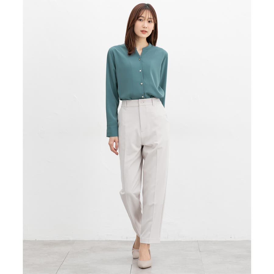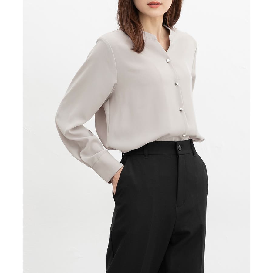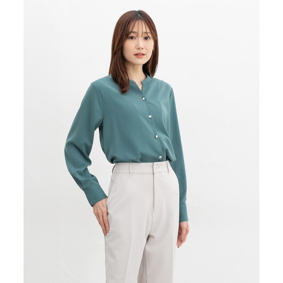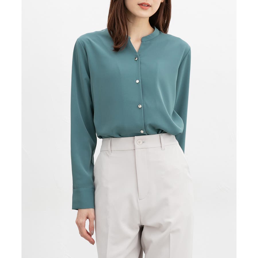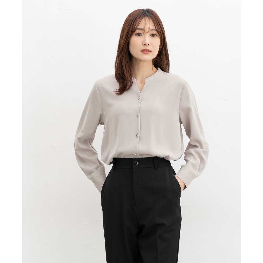 首元がすっきりきれいに見えるマオカラーのスキッパーデザイン。