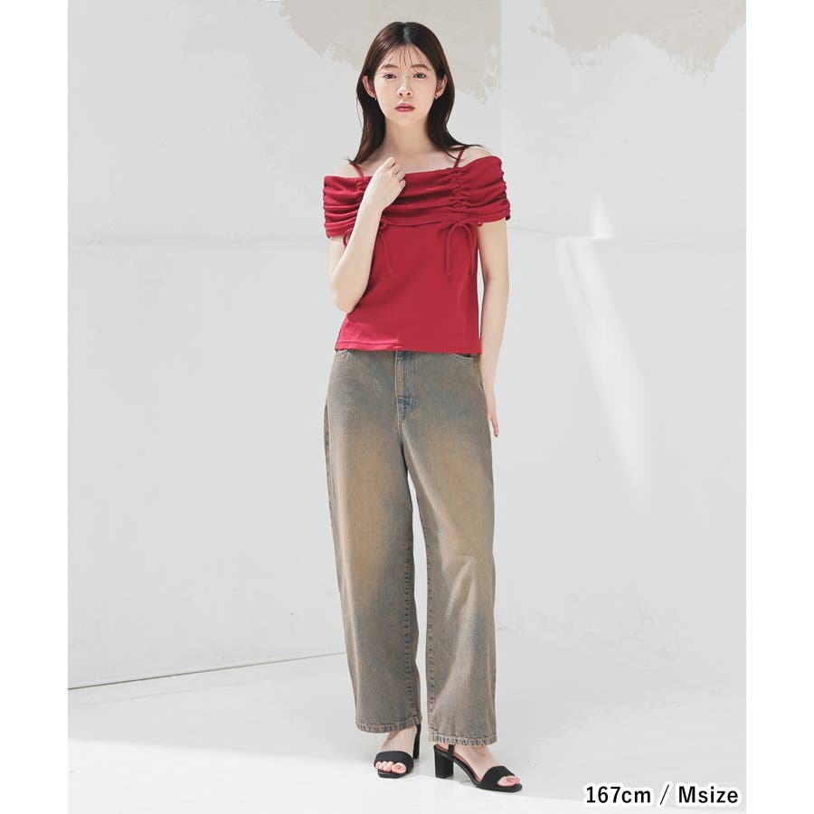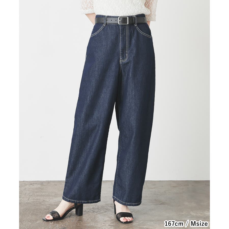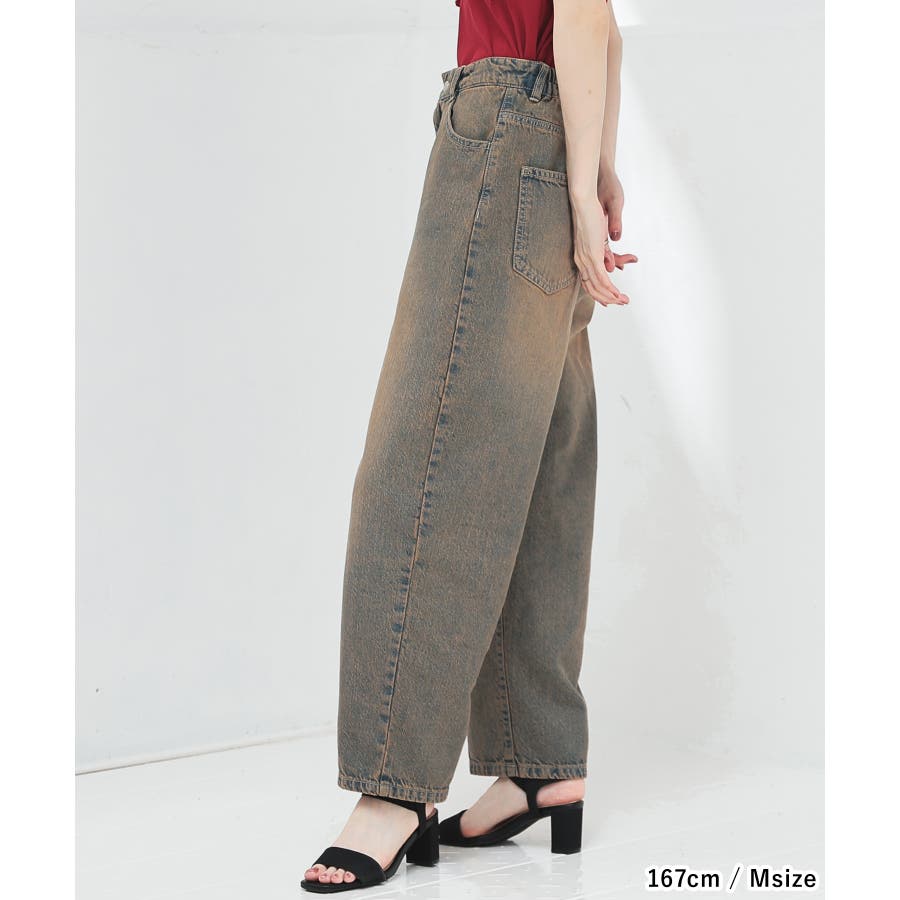 ゆったりとしたもも周りから裾に向かって緩くカーブするシルエットのトレンドライクなデザイン。