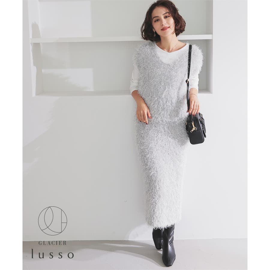 スタイルアップが期待できるシンプルなストレートシルエットながら、トレンド感のあるラメ糸入りで華やかさをプラスした主役級デザイン。