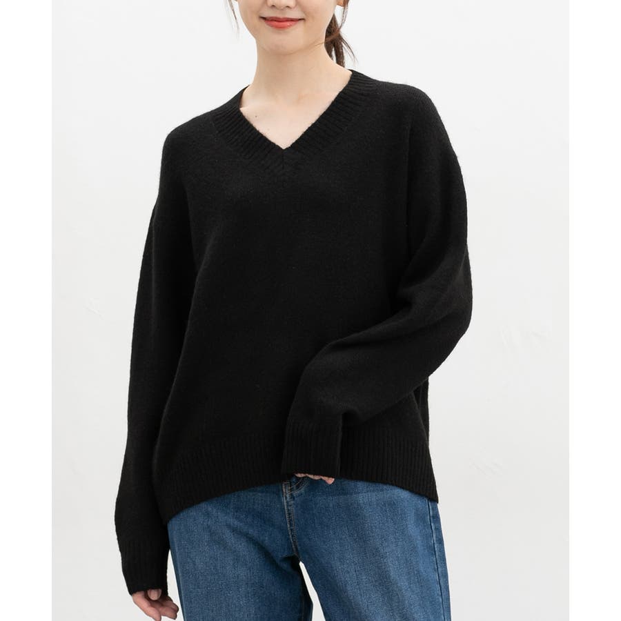 首元がすっきりきれいに見えるVネックのシンプルデザイン。
