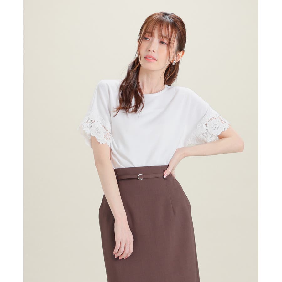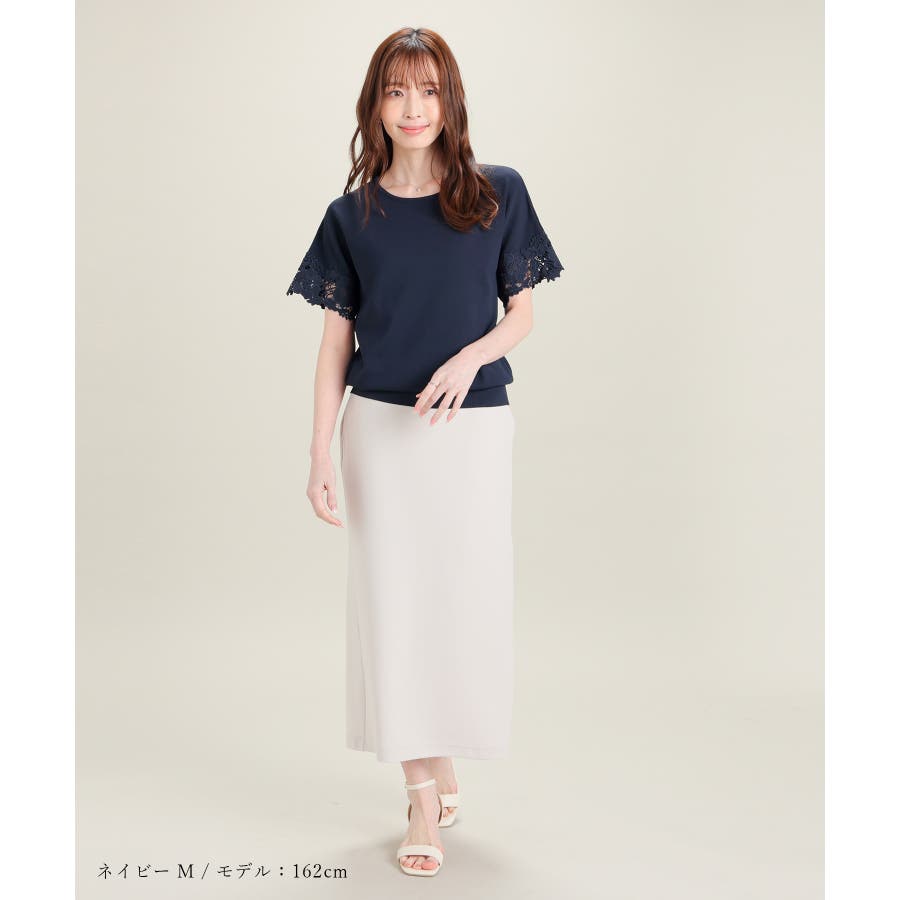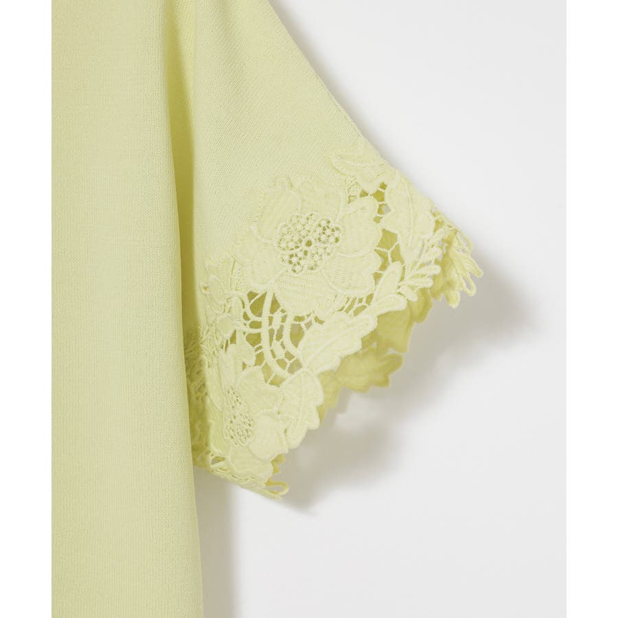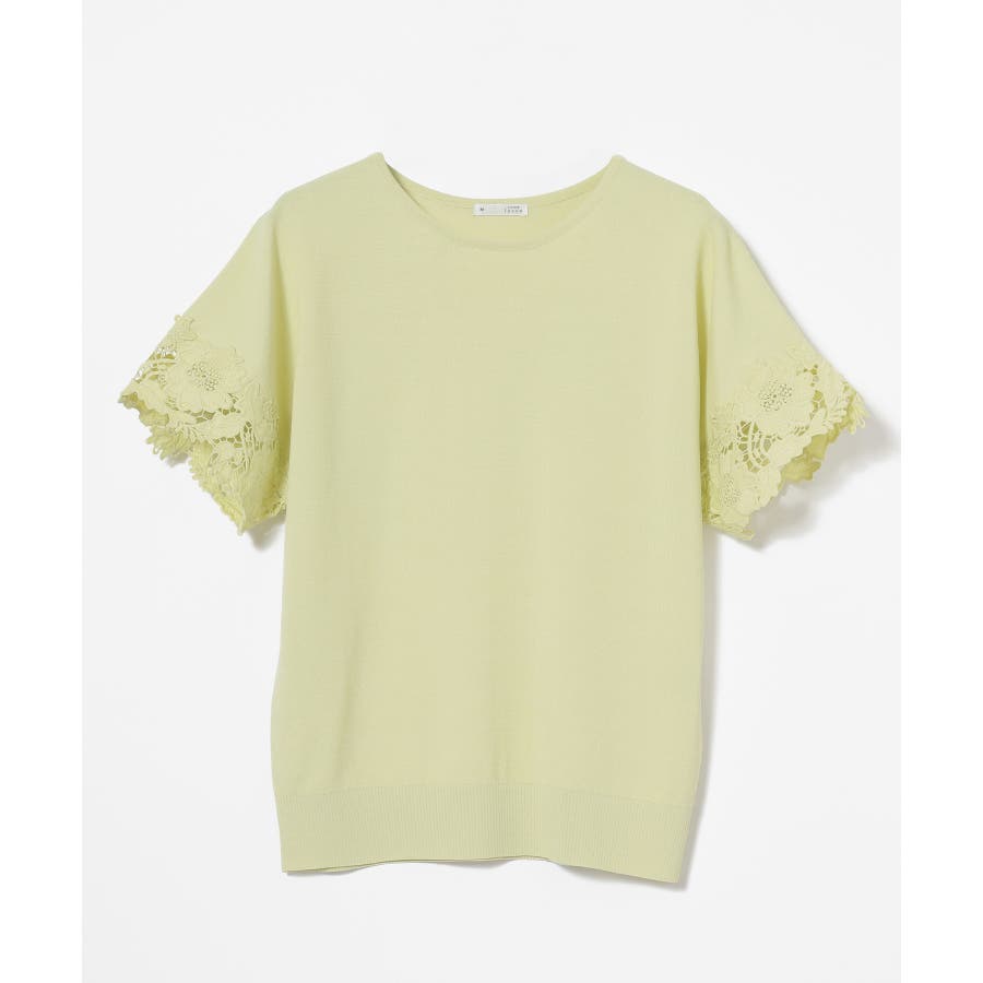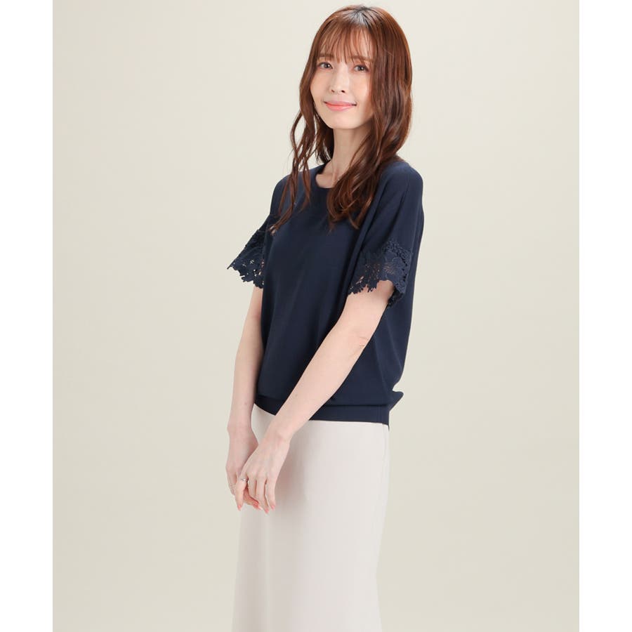 ベーシックなクルーネックのシンプルデザインに、袖口の繊細なレース使いで華やかさをプラス。