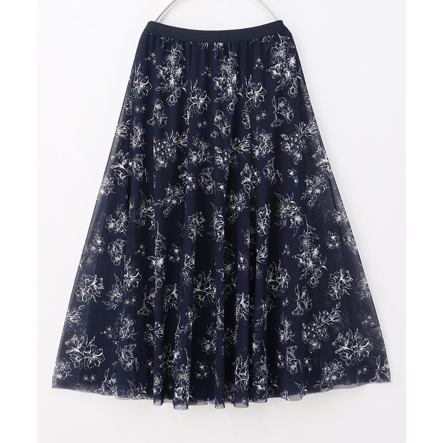 厚手のしっかりした裏地に、柄のチュール地のスカートです。